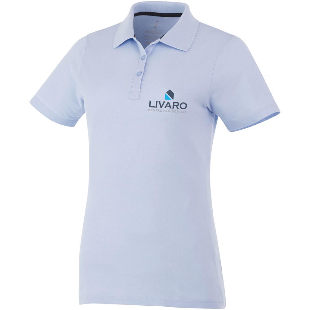 Flachstrickkragen. 1x1 Rippstrickkragen und Bund. 3er-Knopfleiste. Doppelnaht an Kragen und Saum. Nackenband in Kontrastfarbe. Gravierte Ton-in-Ton Knöpfe. Transfer Hauptlabel für den etikettfreien Komfort..