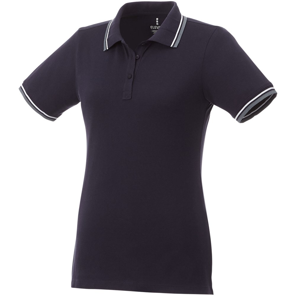 Flachstrickkragen. 1x1 Rippstrickkragen und Bund. Kontrastfarbige Streifen an Kragen und Ärmeln. 3er-Knopfleiste. Gravierte Ton-in-Ton Knöpfe. Transfer Hauptlabel für den etikettfreien Komfort.