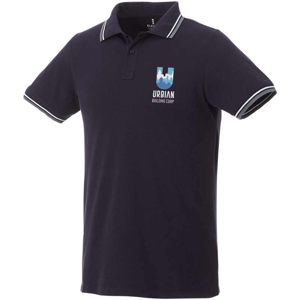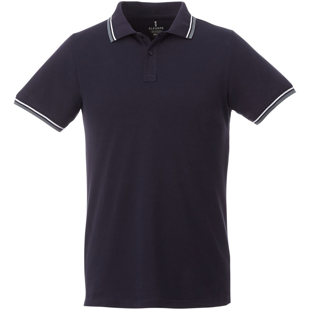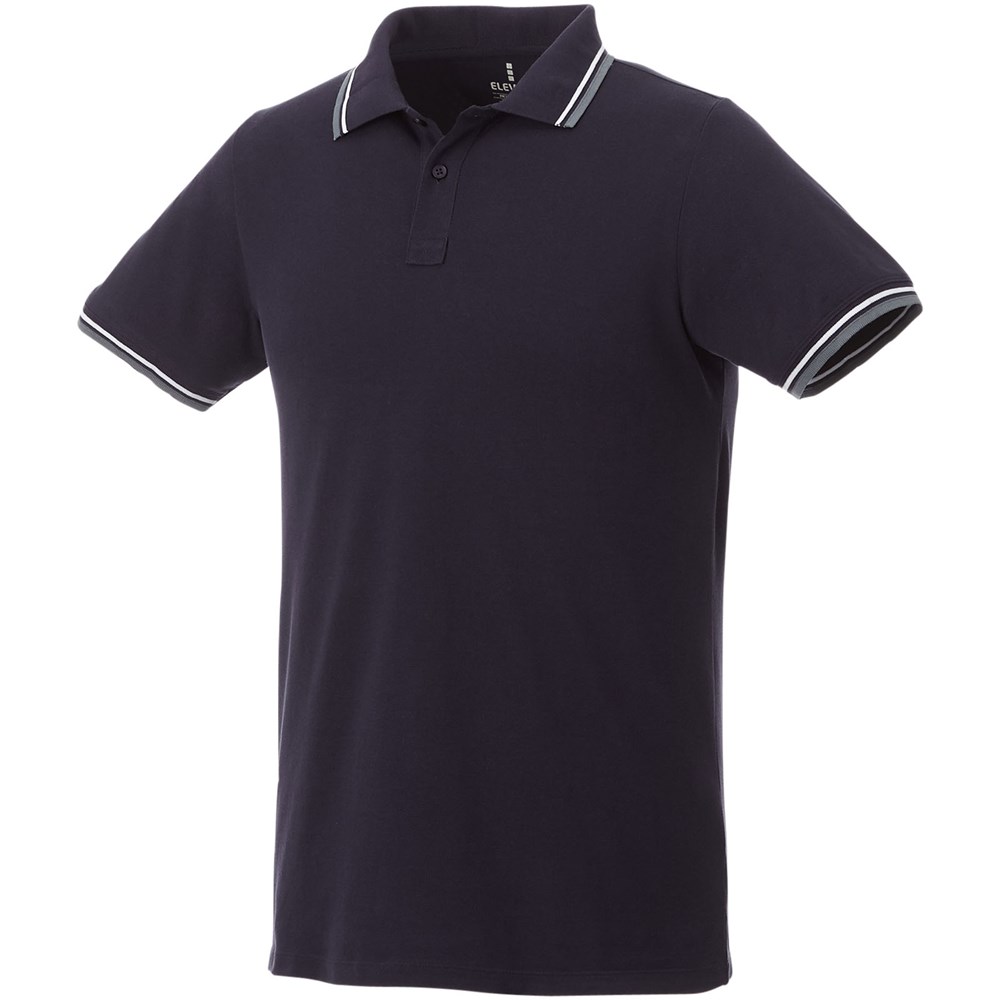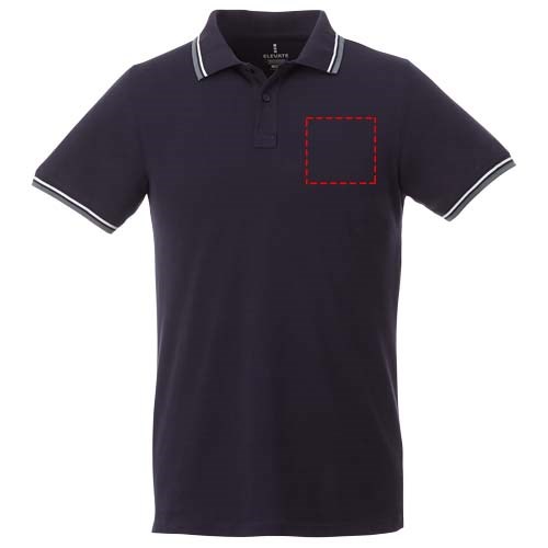 Flachstrickkragen. 1x1 Rippstrickkragen und Bund. Kontrastfarbige Streifen an Kragen und Ärmeln. 2-er Knopfleiste mit gravierten Knöpfen. Gravierte Ton-in-Ton Knöpfe. Transfer Hauptlabel für den etikettfreien Komfort.