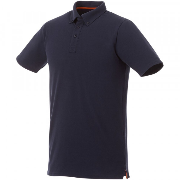 Stoff Einfassung am Kragen. Stetch-Material. 3er-Knopfleiste. Button-Down Kragen. Seitenschlitze. Nackenband in Kontrastfarbe. Halbmond. Gravierte Ton-in-Ton Knöpfe. Transfer Hauptlabel für den etikettfreien Komfort.