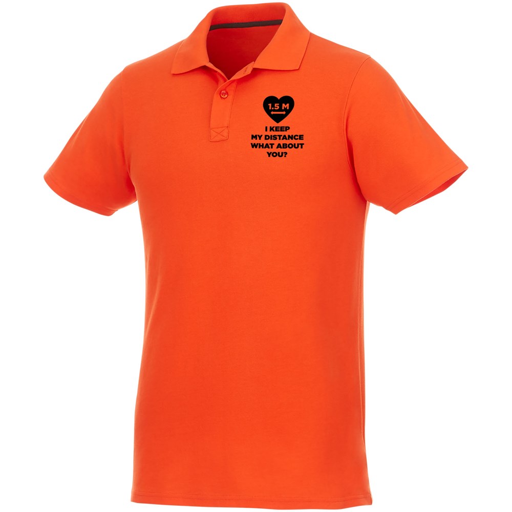 Individuelles Produkt-Branding für den Innenbereich. Ablösbares Label für Tragekomfort. Flachstrickkragen. 2-er Knopfleiste mit gravierten Knöpfen. Doppelnaht an Kragen und Saum. Knopf Ton-in-Ton. Nackenband in Kontrastfarbe.