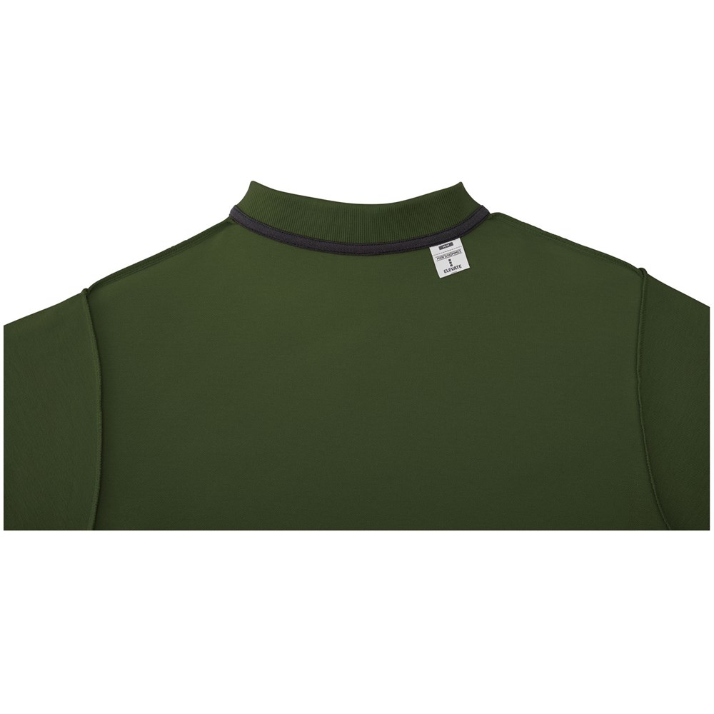 Individuelles Produkt-Branding für den Innenbereich. Ablösbares Label für Tragekomfort. Flachstrickkragen. 2-er Knopfleiste mit gravierten Knöpfen. Doppelnaht an Kragen und Saum. Knopf Ton-in-Ton. Nackenband in Kontrastfarbe.