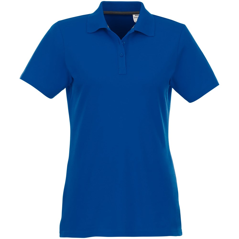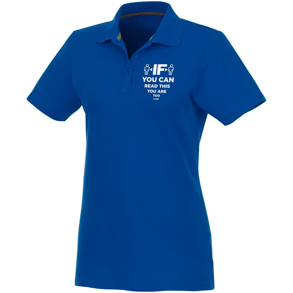 Individuelles Produkt-Branding für den Innenbereich. Ablösbares Label für Tragekomfort. Flachstrickkragen. 3er-Knopfleiste. Doppelnaht an Kragen und Saum. Knopf Ton-in-Ton. Nackenband in Kontrastfarbe.