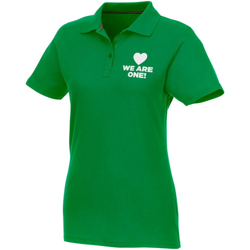 Individuelles Produkt-Branding für den Innenbereich. Ablösbares Label für Tragekomfort. Flachstrickkragen. 3er-Knopfleiste. Doppelnaht an Kragen und Saum. Knopf Ton-in-Ton. Nackenband in Kontrastfarbe.