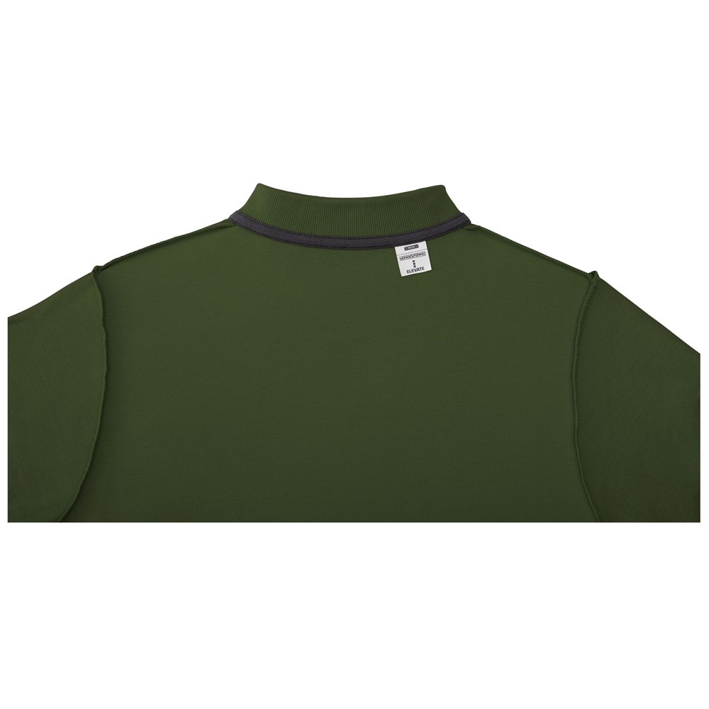 Individuelles Produkt-Branding für den Innenbereich. Ablösbares Label für Tragekomfort. Flachstrickkragen. 3er-Knopfleiste. Doppelnaht an Kragen und Saum. Knopf Ton-in-Ton. Nackenband in Kontrastfarbe.