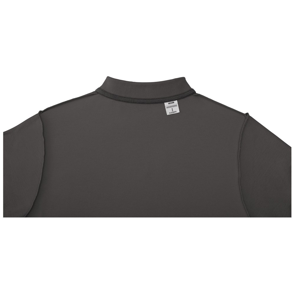 Individuelles Produkt-Branding für den Innenbereich. Ablösbares Label für Tragekomfort. Flachstrickkragen. 3er-Knopfleiste. Doppelnaht an Kragen und Saum. Knopf Ton-in-Ton. Nackenband in Kontrastfarbe.