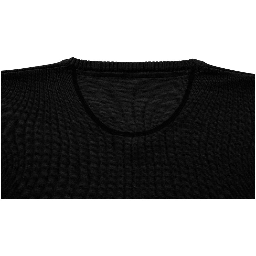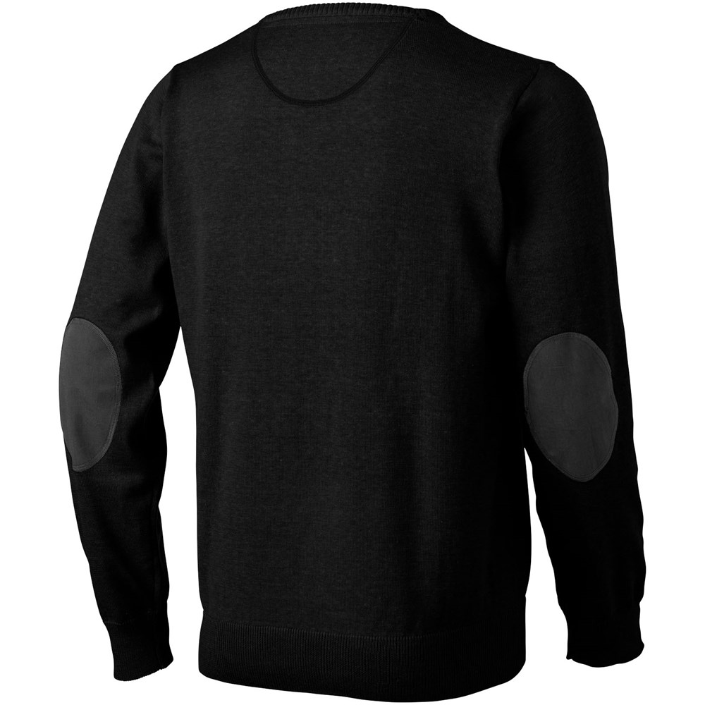 V-Ausschnitt. dekorativer Ellbogen Twill-Stoff-Flicken kontrastfarbig. Flachstrickkragen. 1x1 Rippstrickkragen und Bund. Elasischer 2x2 Rippstrickbund. Kontrastfarbiger Halbmond. Satin Nackenband. Transfer Hauptlabel für den etikettfreien Komfort..