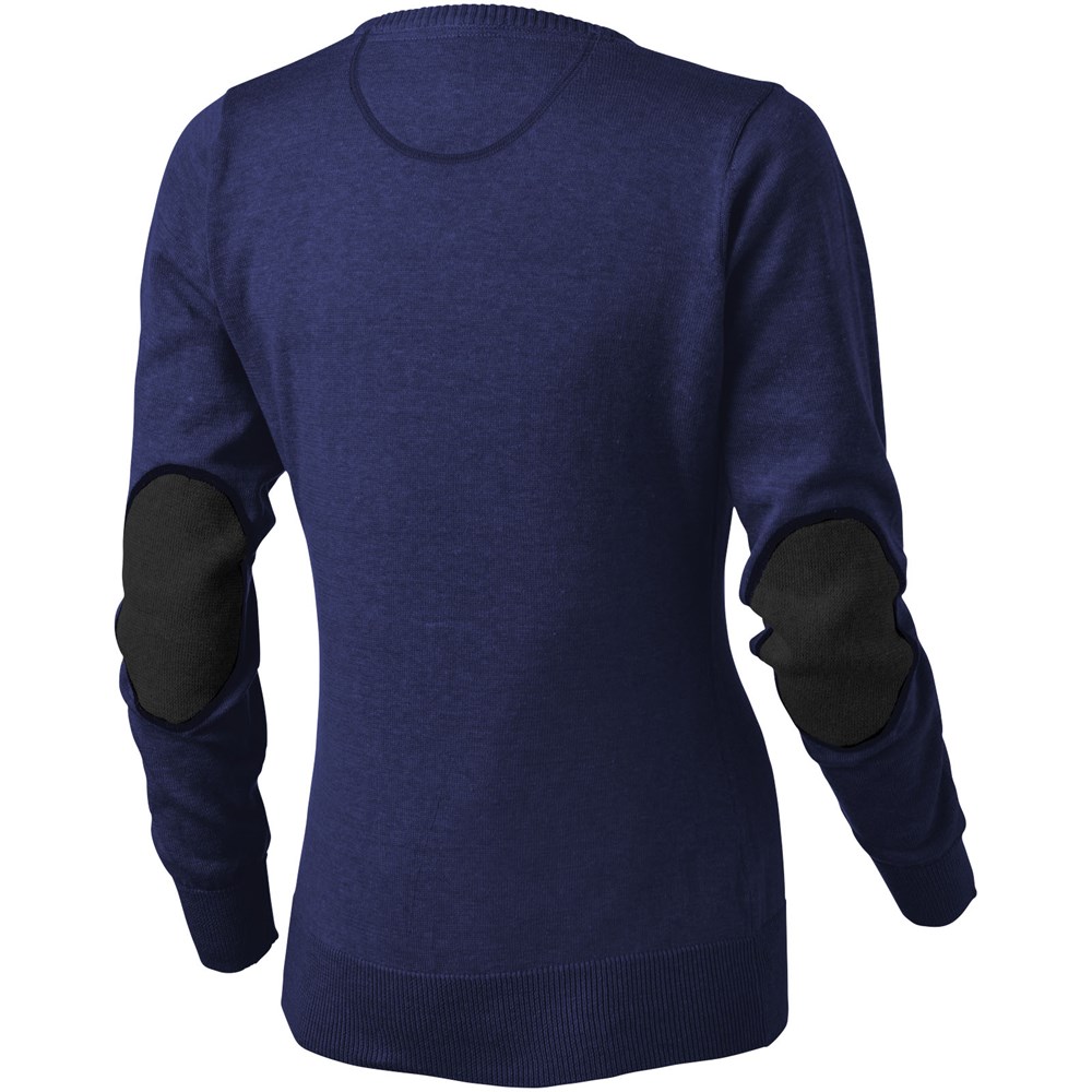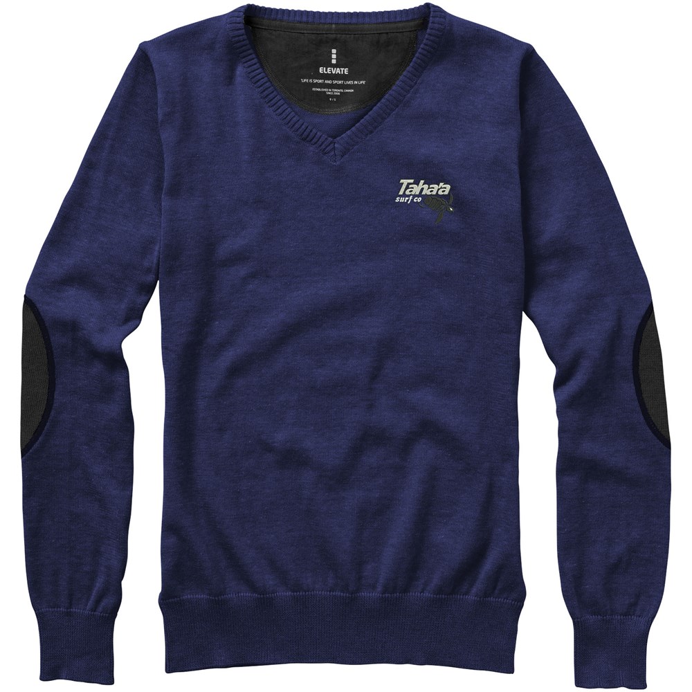 V-Ausschnitt. dekorativer Ellbogen Twill-Stoff-Flicken kontrastfarbig. Tailliert für eine schmeichelhafte Passform. Flachstrickkragen. 1x1 Rippstrickkragen und Bund. Elasischer 2x2 Rippstrickbund. Kontrastfarbiger Halbmond. Satin Nackenband. Transfer Hauptlabel für den etikettfreien Komfort..