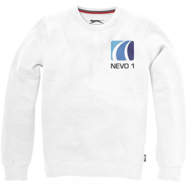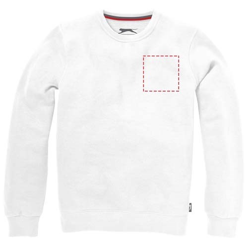 Rundhalsausschnitt. Flachstrickkragen. 1x1 Rippstrickkragen und Bund. Elasischer 2x2 Rippstrickbund. Halbmond. 2-farbiges Nackenband. Label an Seitennaht. Transfer Hauptlabel für den etikettfreien Komfort..