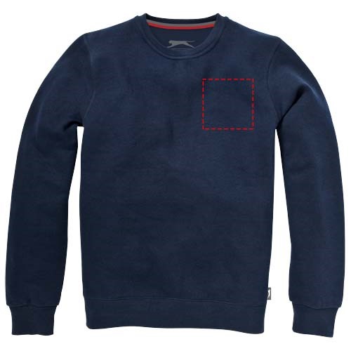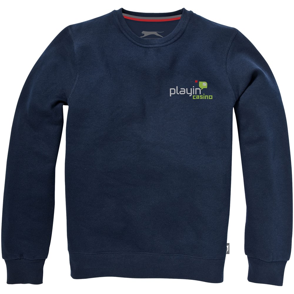 Rundhalsausschnitt. Flachstrickkragen. 1x1 Rippstrickkragen und Bund. Elasischer 2x2 Rippstrickbund. Halbmond. 2-farbiges Nackenband. Label an Seitennaht. Transfer Hauptlabel für den etikettfreien Komfort..