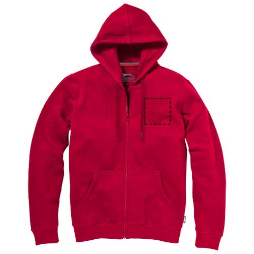 1x1 Rippstrickkragen und Bund. Elasischer 2x2 Rippstrickbund. Herren und Damen Modell mit Kordelzug in Kapuze. Kängurutasche. Easy Grip Reißverschluss Puller. 2-farbiges Nackenband. Halbmond. Antike silberne Ösen mit graviertem Logo. Label an Seitennaht. Transfer Hauptlabel für den etikettfreien Komfort..