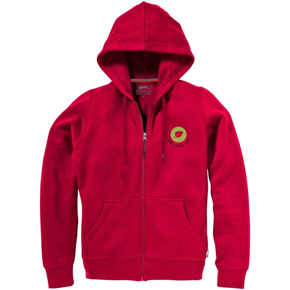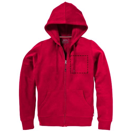 1x1 Rippstrickkragen und Bund. Elasischer 2x2 Rippstrickbund. Kängurutasche. Herren und Damen Modell mit Kordelzug in Kapuze. Tailliert für eine schmeichelhafte Passform. Easy Grip Reißverschluss Puller. Halbmond. 2-farbiges Nackenband. Antike silberne Ösen mit graviertem Logo. Label an Seitennaht.