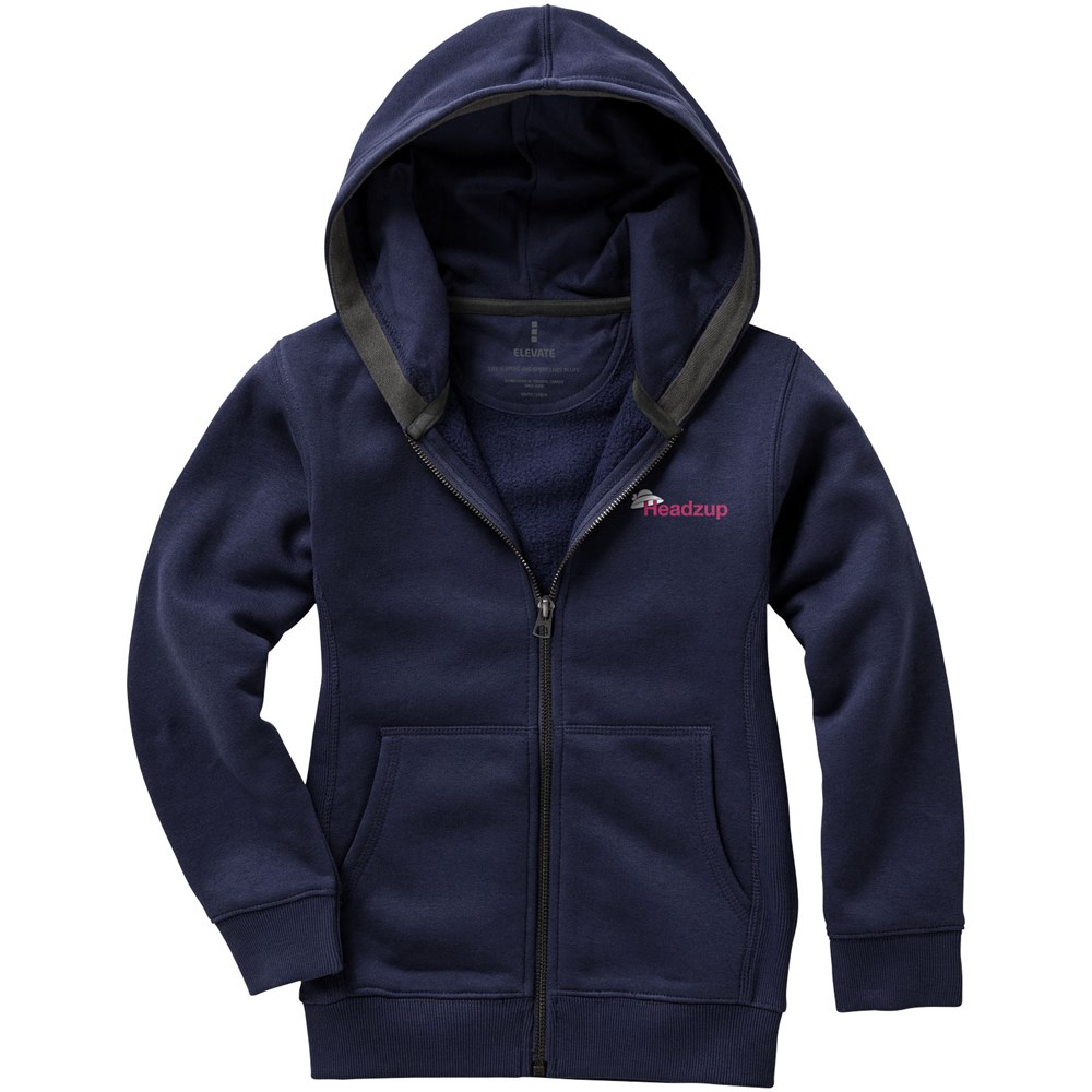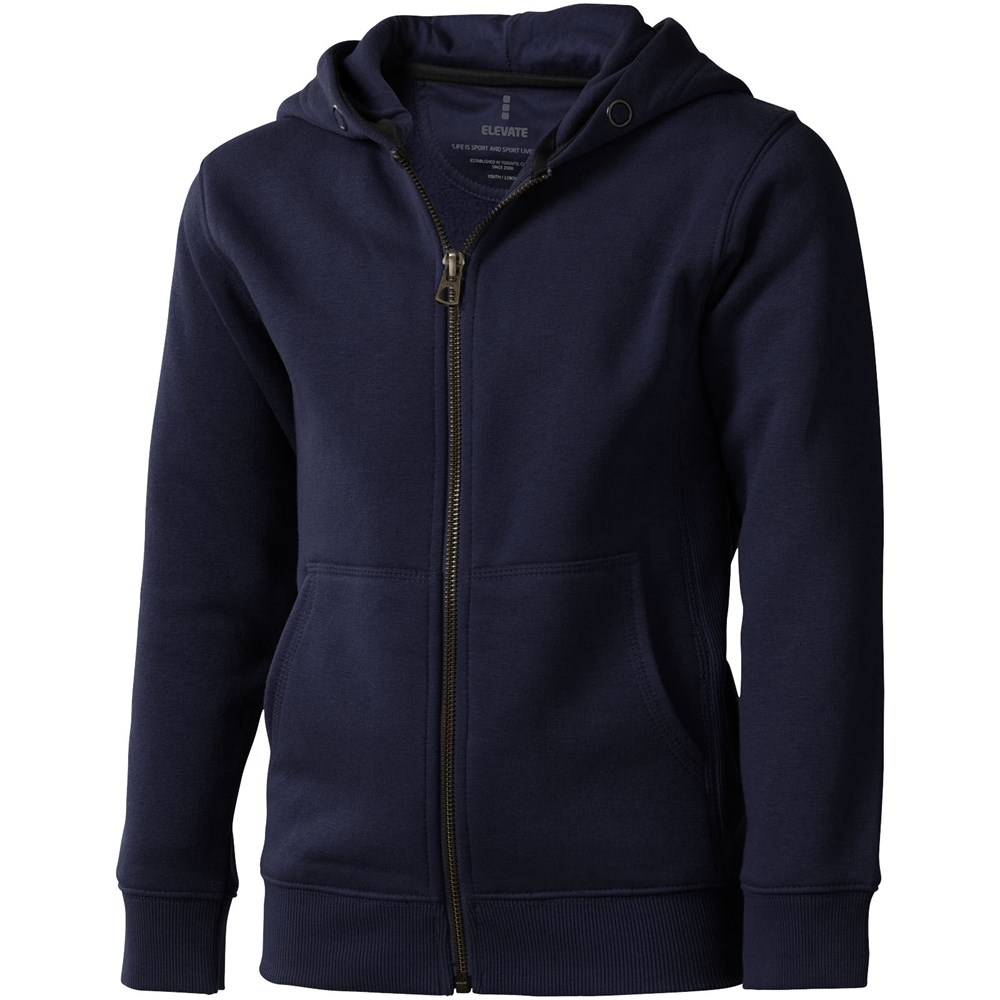 2x2 Rippstrick seitliche Einsätze, Bund und Bündchen. Flachstrickkragen. Elasischer 2x2 Rippstrickbund. Kängurutasche. Single Jersey Futter im Inneren der Kapuze. Halbmond. Satin Nackenband. Kontrastfarbiges Fischgrätenband in der Kapuze. Antike silberne Ösen mit graviertem Logo. Transfer Hauptlabel für den etikettfreien Komfort..