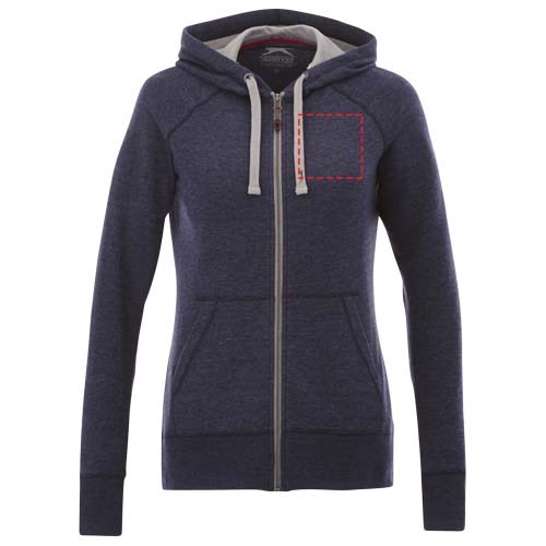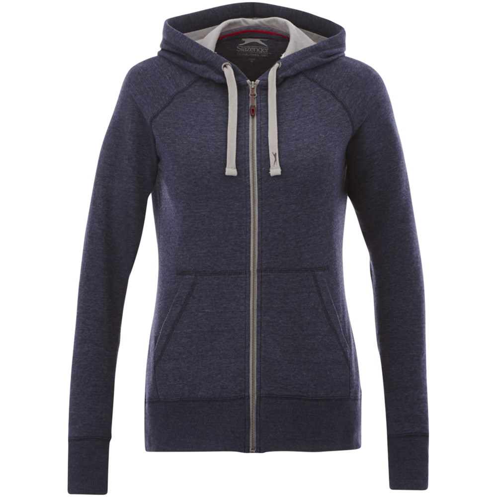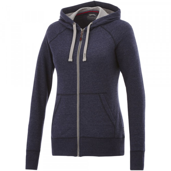 Kontrastfarbiges Single-Jersey Futter. Mediatasche in der rechten Innentasche. Daumenlöcher. Herren und Damen Modell mit Kordelzug in Kapuze. Kängurutasche. Kontrastfarbige Flatlock-Naht. Elasischer 2x2 Rippstrickbund. 1x1 Rippstrickkragen und Bund. Metall-Reißverschluss. 2-farbiges Nackenband.