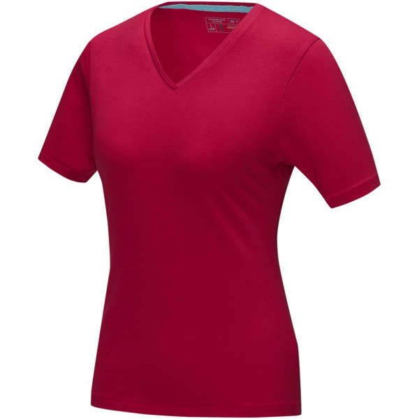 Nachhaltige Promotionbekleidung. Stoff Einfassung am Kragen. V-Ausschnitt. Stetch-Material. Rückstich Details. Zweifarbiges Schulter zu Schulter Nackenband. Transfer Hauptlabel für den etikettfreien Komfort.