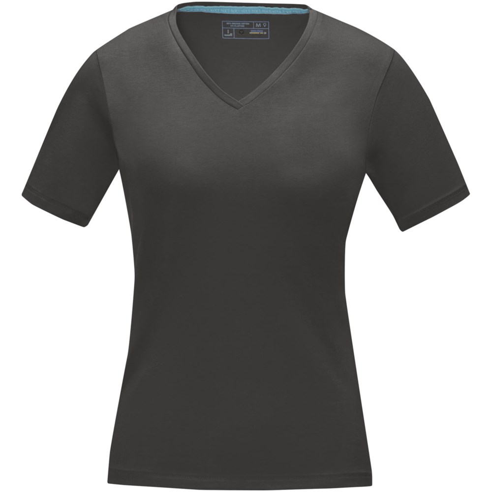 Nachhaltige Promotionbekleidung. Stoff Einfassung am Kragen. V-Ausschnitt. Stetch-Material. Rückstich Details. Zweifarbiges Schulter zu Schulter Nackenband. Transfer Hauptlabel für den etikettfreien Komfort.