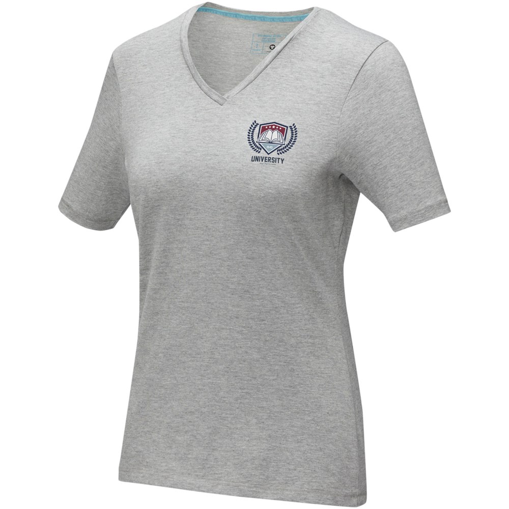 Nachhaltige Promotionbekleidung. Stoff Einfassung am Kragen. V-Ausschnitt. Stetch-Material. Rückstich Details. Zweifarbiges Schulter zu Schulter Nackenband. Transfer Hauptlabel für den etikettfreien Komfort.