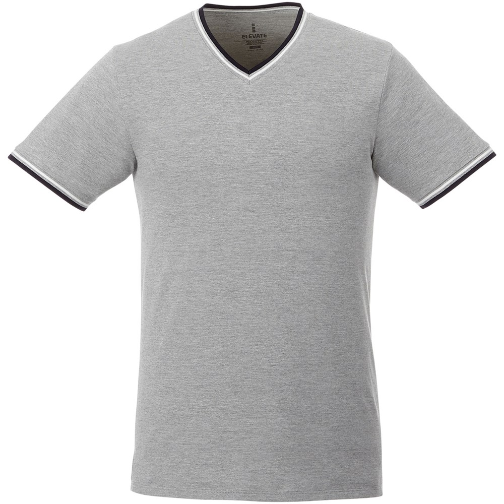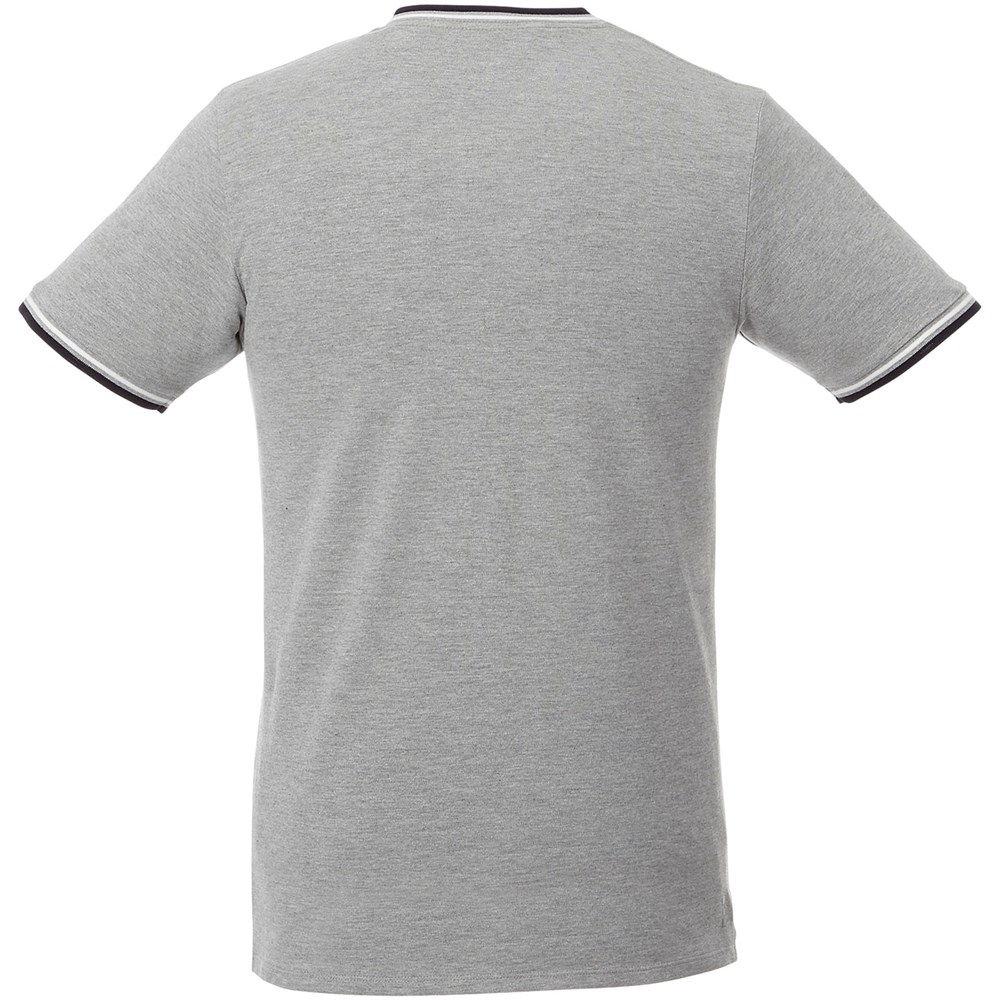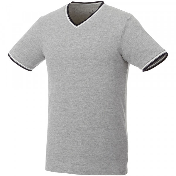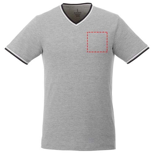 Flachstrickkragen. 1x1 Rippstrickkragen und Bund. Kontrastfarbige Streifen an Kragen und Ärmeln. V-Ausschnitt. Doppelnaht an Kragen und Saum. Transfer Hauptlabel für den etikettfreien Komfort.