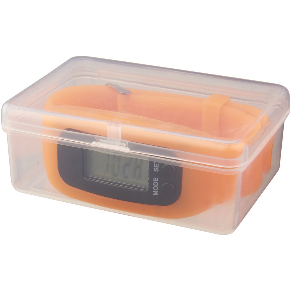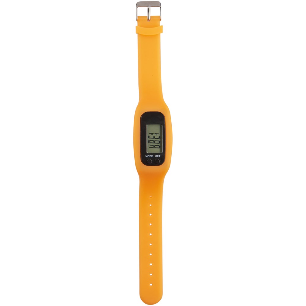 Silikon-Smart-Uhr mit Metallschnalle, Druckknöpfen, um Einstellungen zu ändern und 5-stelliger LED-Anzeige mit Zeit, Schrittzahl und verbrannten Kalorien. Geeignet für metrische Systemeinstellungen. Kommt in einem transparenten Kunststoff-Gehäuse für einfache bequeme Lagerung und Dekoration. Mit Batterien.