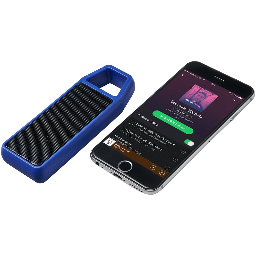 Qualitativ hochwertiger Sound in einer kleinen Form, der Musik oder andere Audiodateien von jedem Bluetooth®-Gerät wiedergibt. Mit dem eingebauten Clip ist er ideal für alle, die viel unterwegs sind. Bluetooth®-Bereich von 10 m (33 ft). Bis zu 1,5 Stunden Musik bei maximaler Lautstärke mit einer einzigen Ladung. Die Ladezeit beträgt ca. 1,5 Stunden. Enthält ein Mikro-USB-Ladekabel und ein eingebautes Mikrofon.