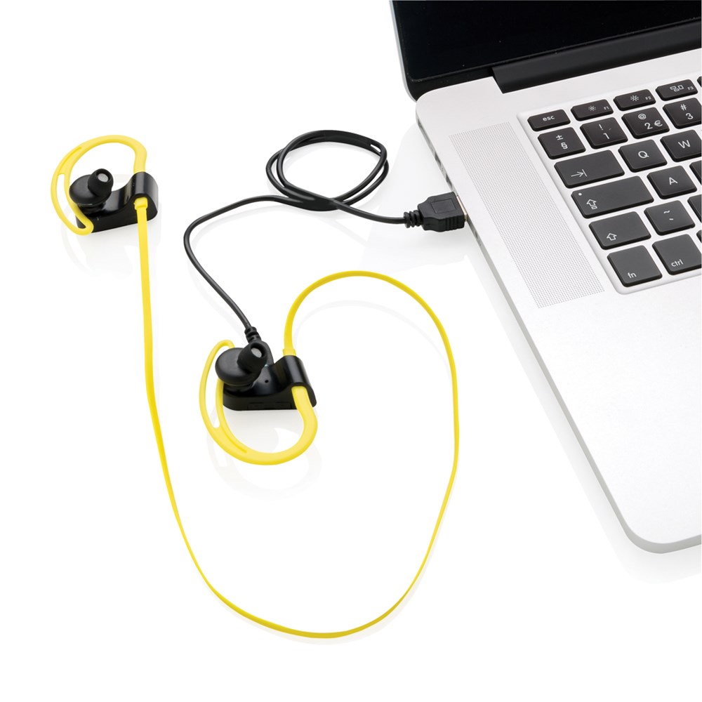 Kabellose Sport-Kopfhörer mit 4.1 BT-Technologie für eine schnelle Verbindung und perfekten Sound. Das ABS Gehäuse schützt for Schweiß und ist daher optimal für den Sport. Das ergonomische Design garantiert einen perfekten Sitz während Ihrer Aktivitäten. Am Kopfhörer finden Sie die Lautstärkeregelung, den Knopf für das nächste/vorangegangene Lied und das Mikrofon um Telefonate zu führen - Reichweite bis zu 10m. Spielt bis zu 4h and hält bis zu 120h im Standby.
