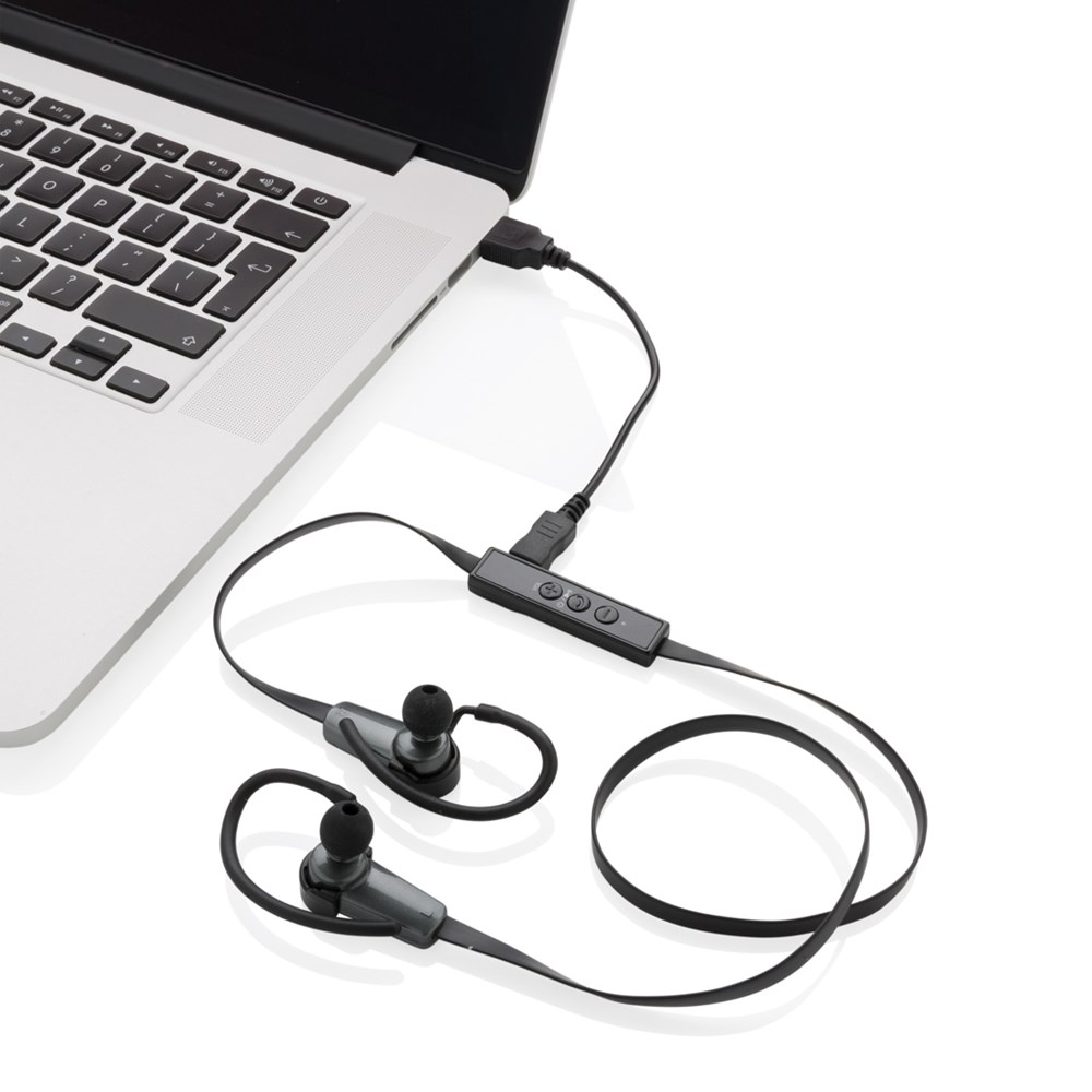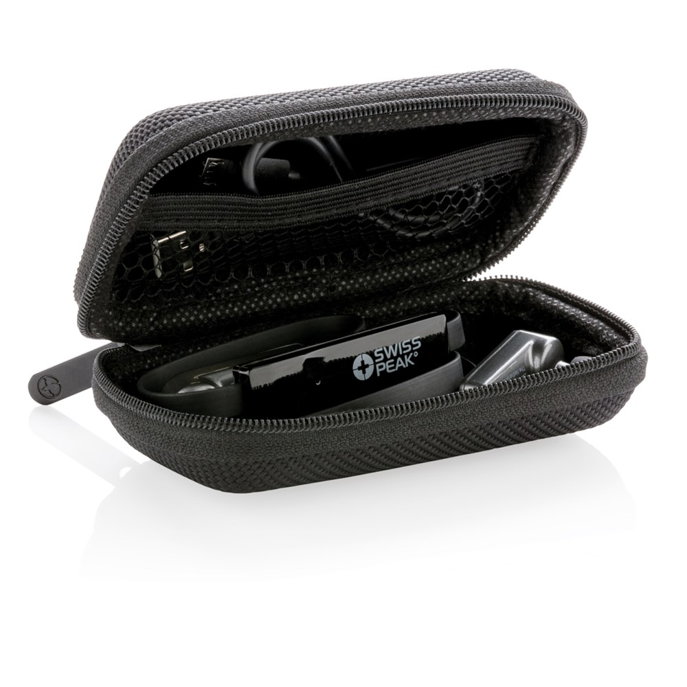 Kabellose 4.0 BT Kopfhörer optimiert für Outdoor-Aktivitäten und Sport. Ohrhörer aus ABS und TPE Kabel eignen sich perfekt auch unter härtesten Bedingungen. Die Batterie hält bis zu 4 Std. und ist innerhalb einer Stunde wieder voll geladen. Verpackt im Swiss Peak Etui und einer Geschenkbox. Mit 2 zusätzlichen Aufsätzen für den perfekten Sitz.