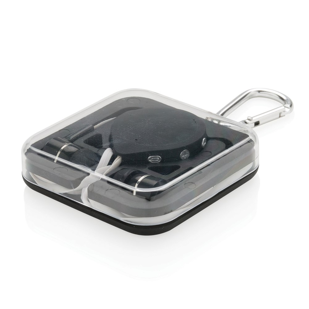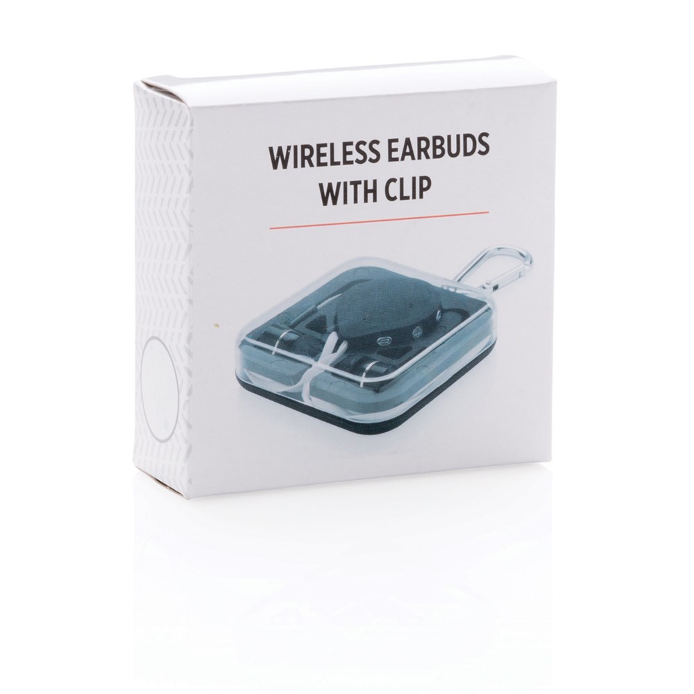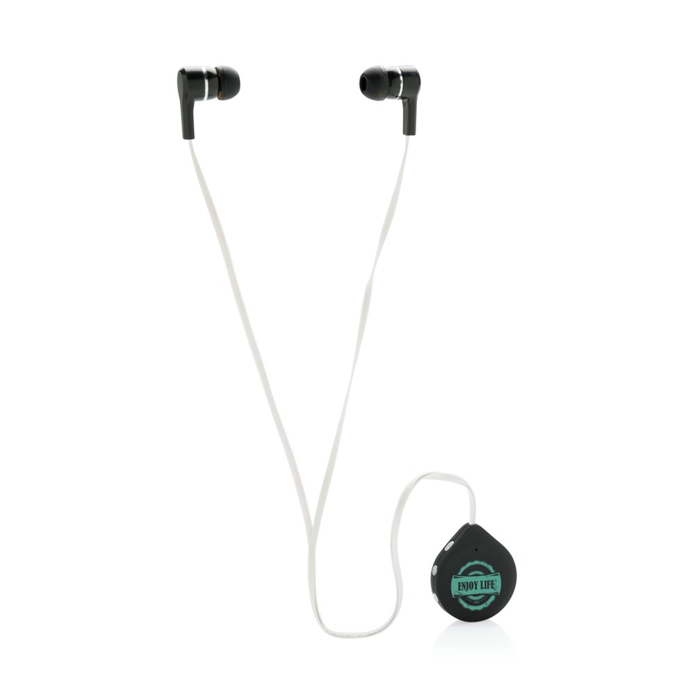 Kabellose Kopfhörer mit 60cm TPE-Kabel und Clip für einen optimalen Halt an Ihrer Kleidung. Mit Play/Pause Knopf und Lautstärkeregulierung. BT 4.0 für eine perfekte Verbidung zu Ihrem Gerät auf bis zu 10m. Die 60 mAh Batterie spielt Ihre Musik bis zu 3,5h. In transparenter Box mit EVA-Einleger verpackt.