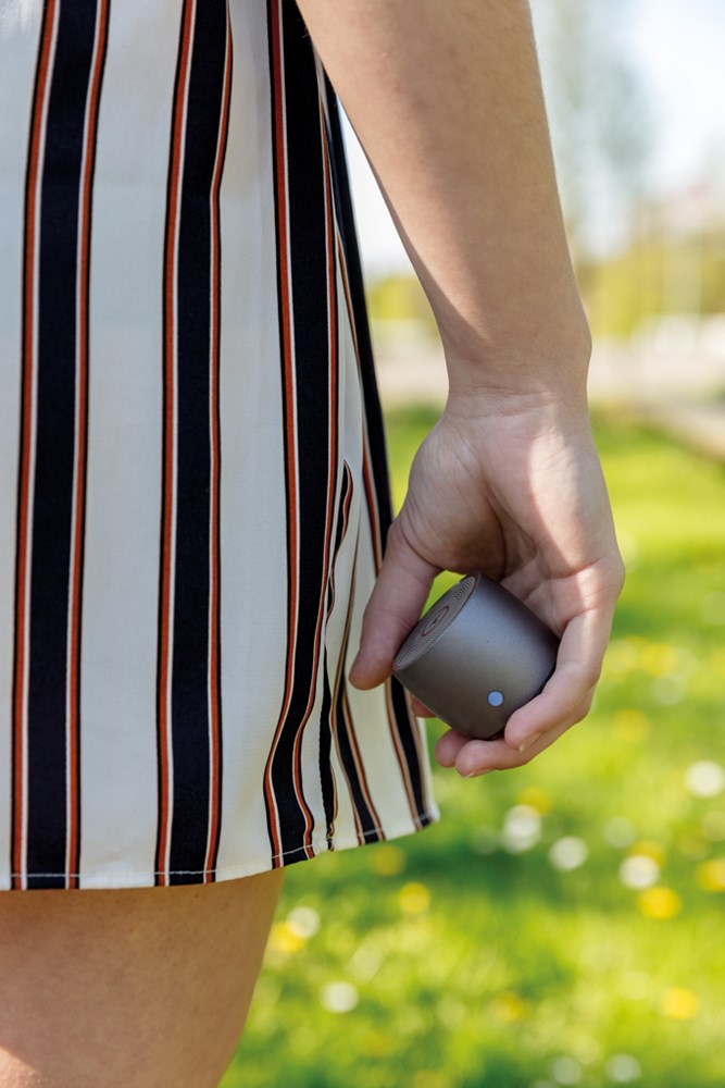 Kompakter 3 W-Lautsprecher mit überraschend klarem Klangbild. Der untere Teil des Lautsprechers besitzt einen eigenen Treiber zur Verbesserung der Bassleistung. Aus hochwertigem Edelstahl für elegantes Aussehen und Haptik. Mit 500 mAh-Batterie für bis zu 5 Stunden Spielzeit Ihrer Lieblingsmusik. Reichweite bis zu 10 m.
