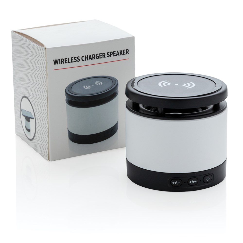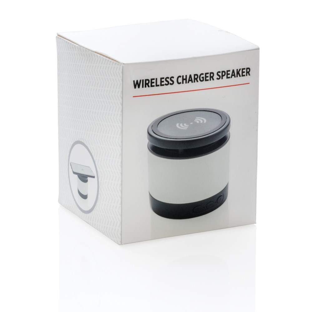 Dieser 3W Wireless-Charger erlaubt es Ihnen Ihr mobiles Gerät zu laden während Sie Ihre Lieblingsmusik hören. Verbinden Sie das inbegriffene Micro USB Kabel (150cm) einfach mit einer Energiequelle und schon kann es losgehen. Der Lautsprecher verfügt über 3W, BT 4.2 und eine 400mAh Batterie für eine Spielzeit von bis zu 3 Stunden bei einer Reichweite von bis zu 10 Metern. Beim zeitgleichen Gebrauch beider Funktionen empfehlen wir den Lautsprecher an eine Energiequelle anzuschließen. Kompatibel mit allen QI Geräten wie z.B. Androids neuster Generation, iPhone 8 und höher. Input: 5V/1A. Wireless output: 5V/1A 5W. Registered design®