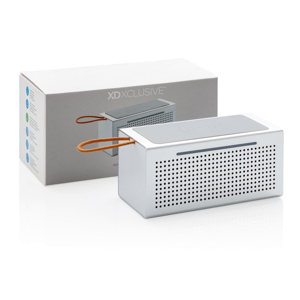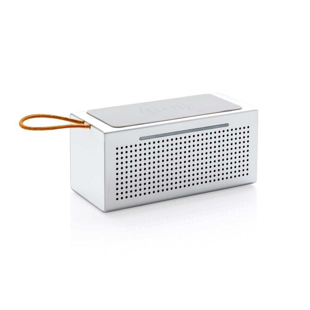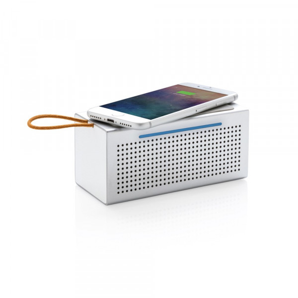 "No Vibe? No Party!" Mit diesem Wireless-Charger und Lautsprecher sind Sie der Hit auf jeder Party! Der 6W Lautsprecher kombiniert eine gute Klangqualität mit gutem Bass für das ultimative Musikerlebnis. Der Lautsprecher verfügt über einen 5W Wireless-Charger, BT4.1 und ist aus hochwertigem Aluminium hergestellt. Im Lieferumfang inbegriffen ist ein extra langes 150cm Micro-USB Kabel. Beim zeitgleichen Gebrauch beider Funktionen empfehlen wir den Lautsprecher an eine Energiequelle anzuschließen. Ohne die Ladefunktion zu nutzen bietet die 4.400mAh Batterie Musikgenuss für bis zu 8 Stunden. Mit dem integrierten Mikrofon und der Pick-up Funktion können Sie auch einfach und bequem Anrufe entgegennehmen. Registered design®