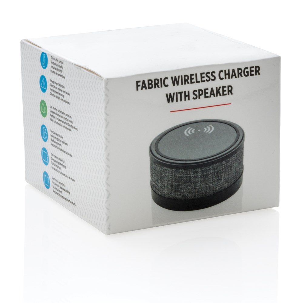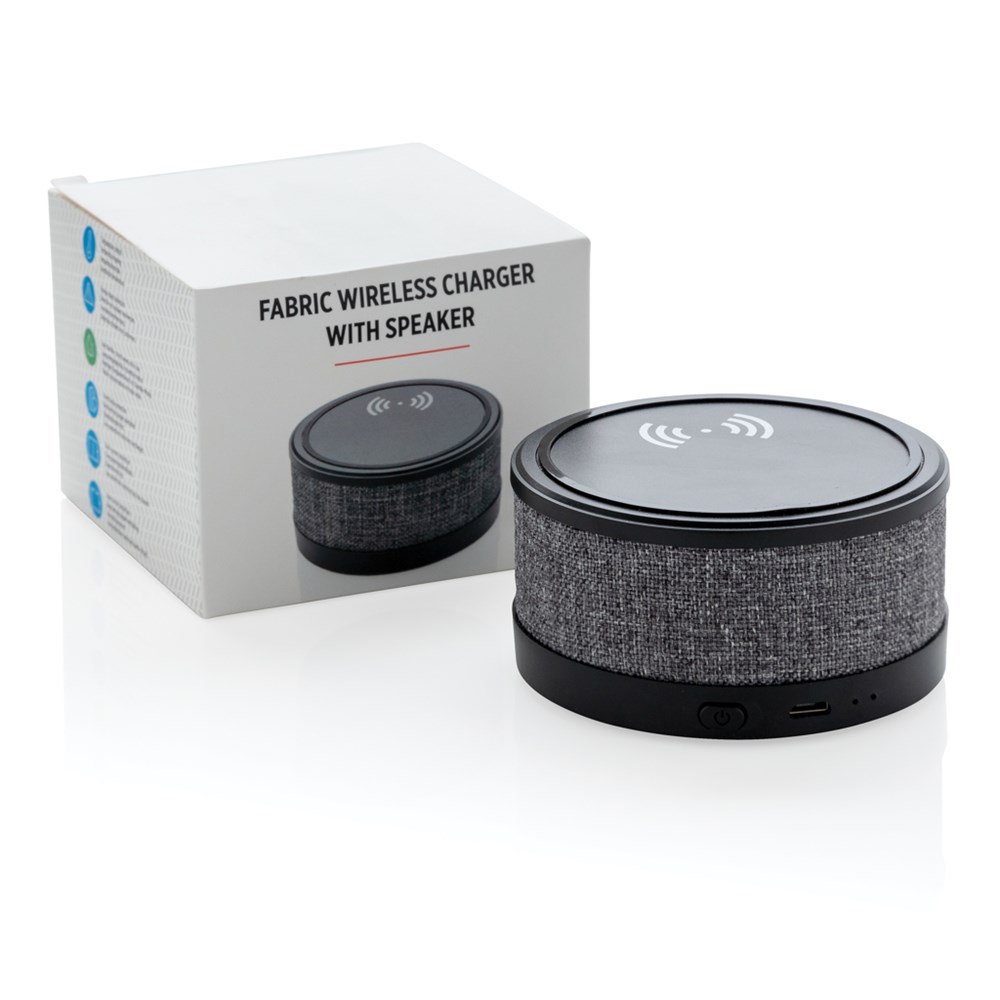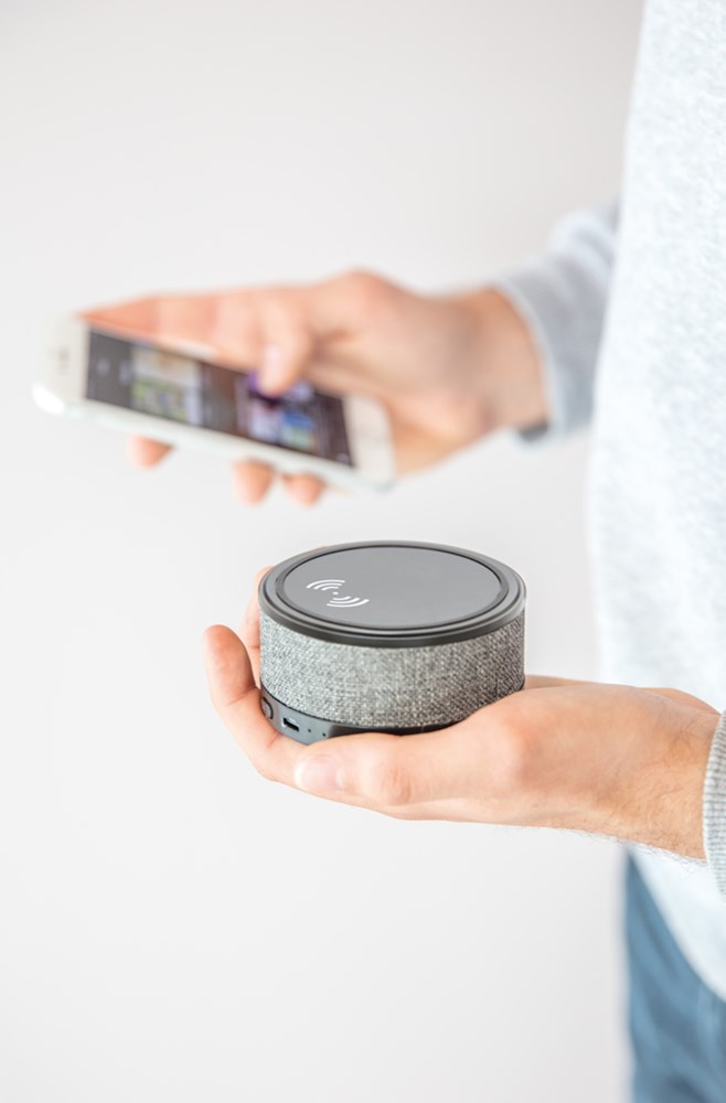 Wireless-Charger mit Lautsprecher im trendigen Stoffbezug