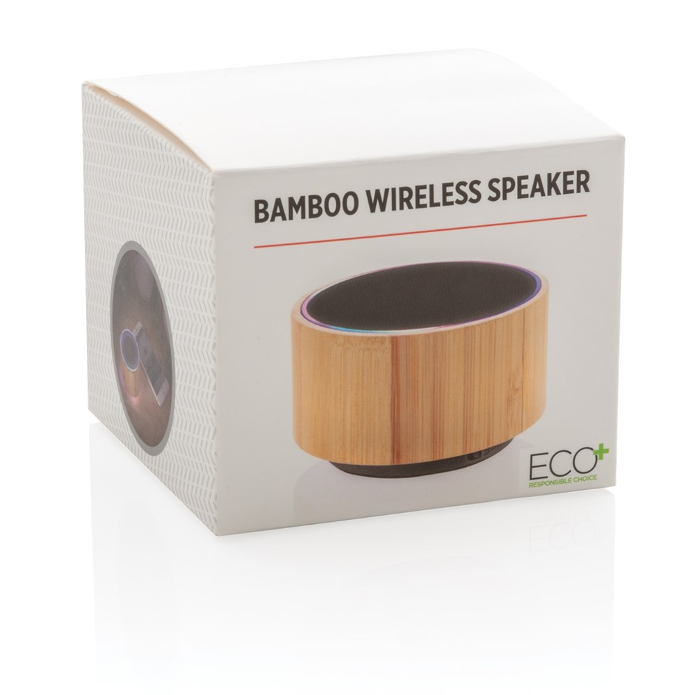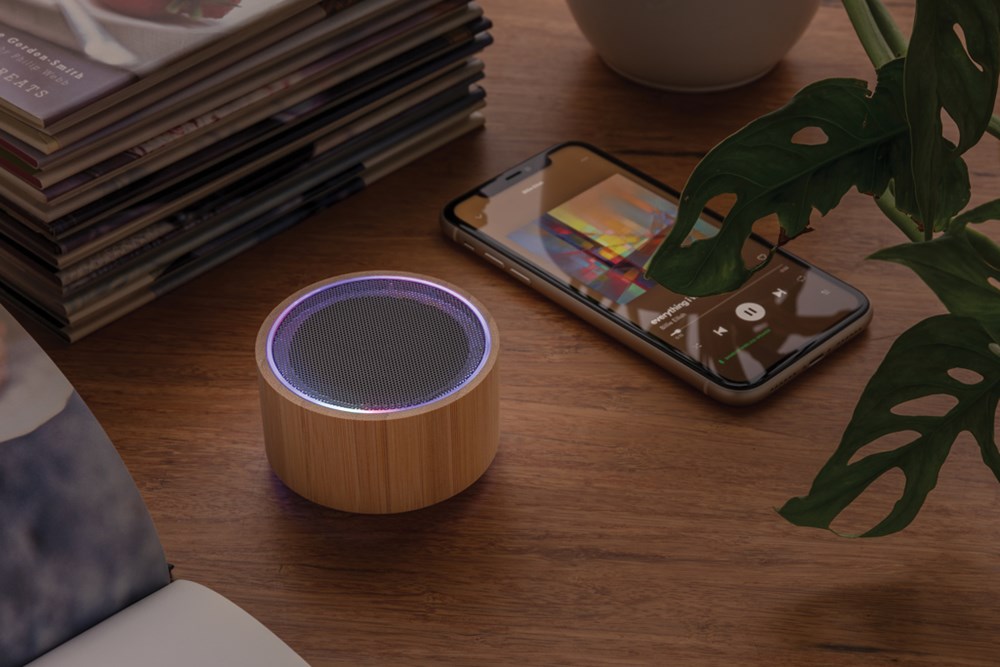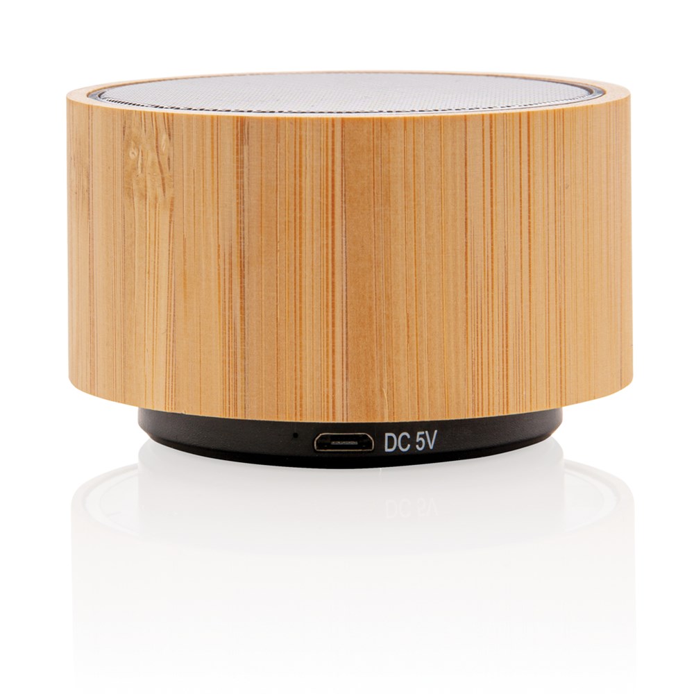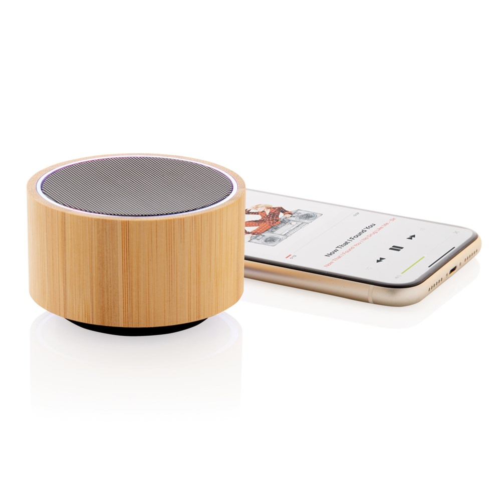 3W Lautsprecher aus natürlichem Bambus mit integrierter 300mAh Lithium-Batterie. Bis zu drei Stunden Laufzeit pro Akkuladung. Mit BT 4.1 Verbindung auf bis zu 10 Metern. Inklusive Umgebungslicht.