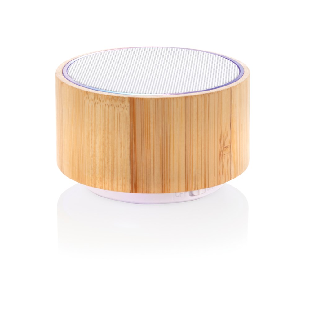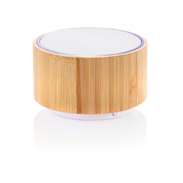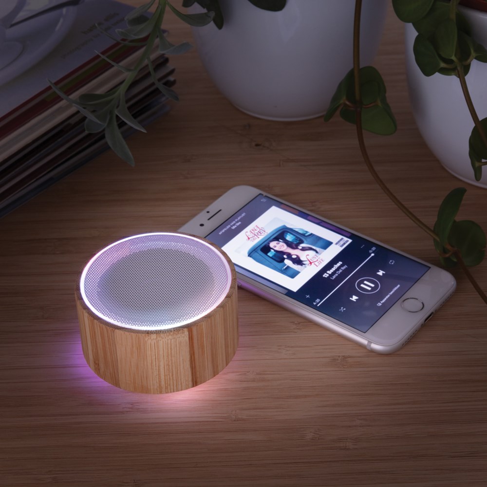 3W Lautsprecher aus natürlichem Bambus mit integrierter 300mAh Lithium-Batterie. Bis zu drei Stunden Laufzeit pro Akkuladung. Mit BT 4.1 Verbindung auf bis zu 10 Metern. Inklusive Umgebungslicht.