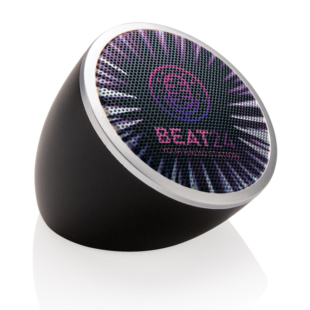 Klein aber oho! Dieser 3W Lautsprecher bietet eine tolle Fläche für Ihr Logo. Aus ABS mit Metallgitter. Die 300 mAh Batterie spiel Ihre Musik bis zu 3h und ist in 1h wieder voll geladen. Die BT 5.0 Technologie sorgt für eine klare und stabile Verbindng auf bis zu 10m. Mit Mikrofon und Anrufannahmefunktion.