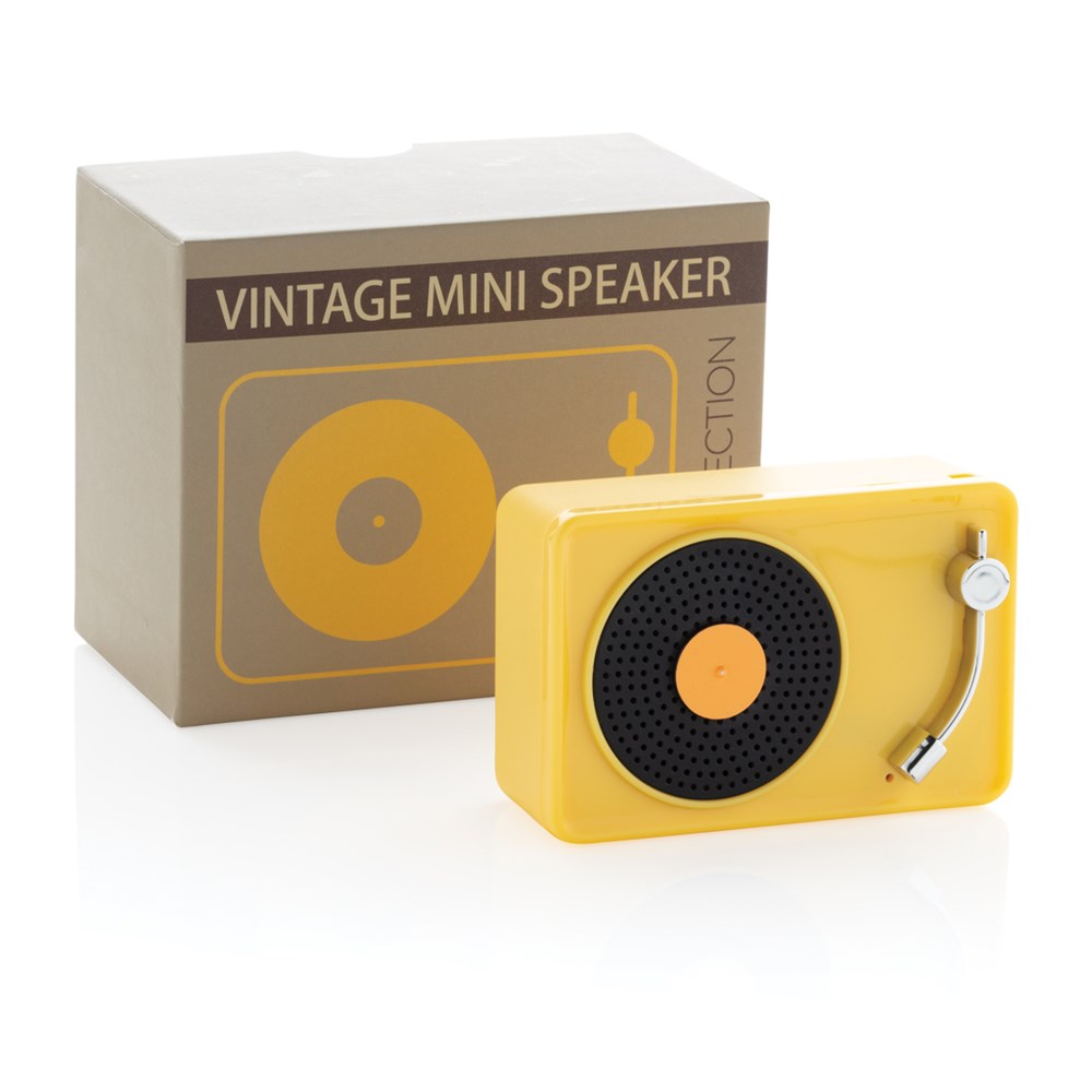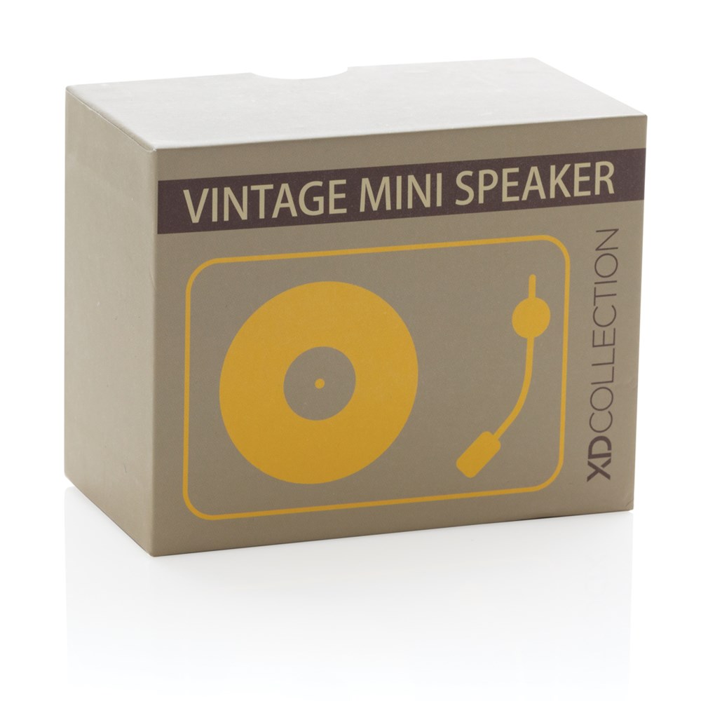 Trendiger kabelloser 3W Lautsprecher aus ABS im Vintage Look-and-Feel. Klarer Sound mit BT 5.0 für eine stabile Verbindung auf bis zu 10m. Die 350 mAh Batterie spielt Ihre Lieblingsmusik bis zu 3h und ist innerhalb von 2h wieder voll geladen. Verpackt in einer Geschenkbox im Vintage-Design. Mit Mikrofon um auch Telefonate führen zu können.