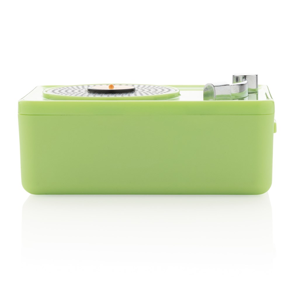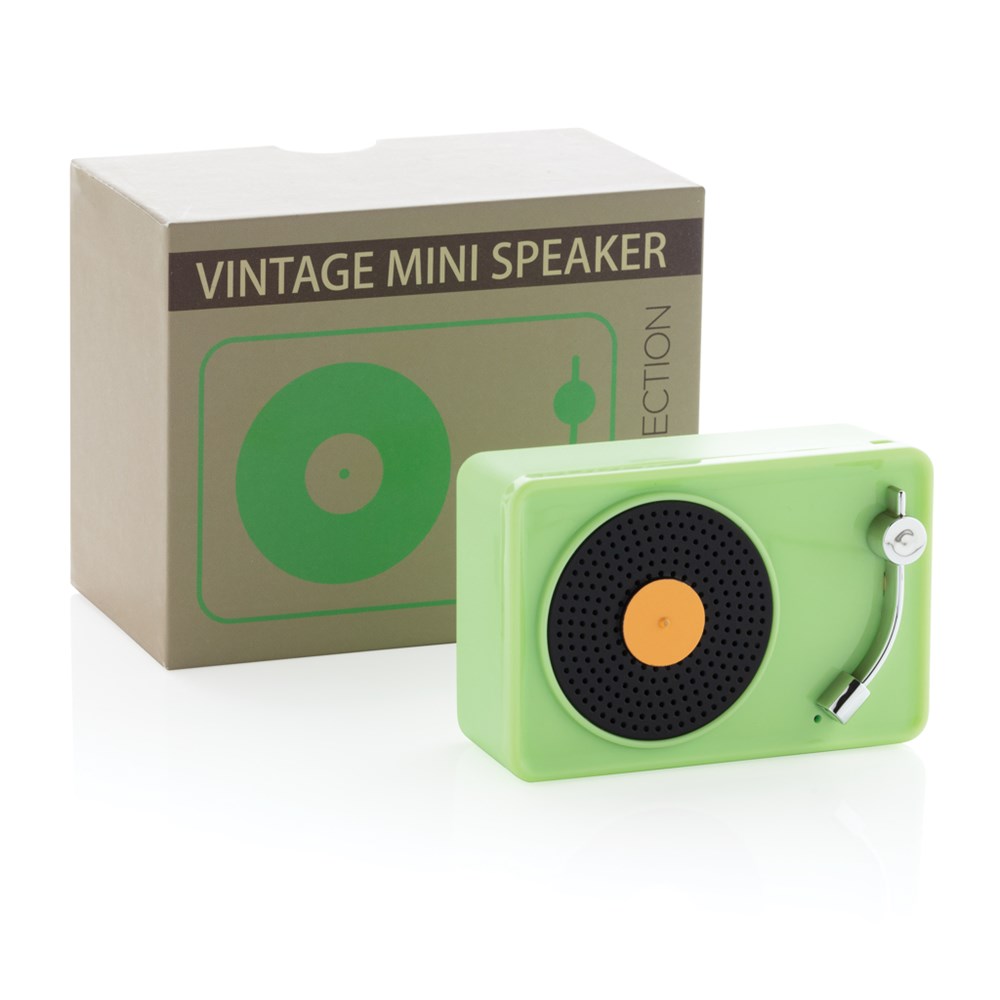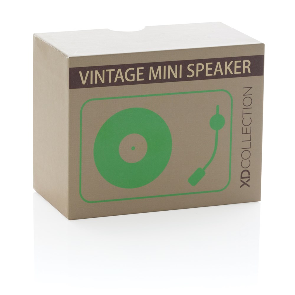 Trendiger kabelloser 3W Lautsprecher aus ABS im Vintage Look-and-Feel. Klarer Sound mit BT 5.0 für eine stabile Verbindung auf bis zu 10m. Die 350 mAh Batterie spielt Ihre Lieblingsmusik bis zu 3h und ist innerhalb von 2h wieder voll geladen. Verpackt in einer Geschenkbox im Vintage-Design. Mit Mikrofon um auch Telefonate führen zu können.