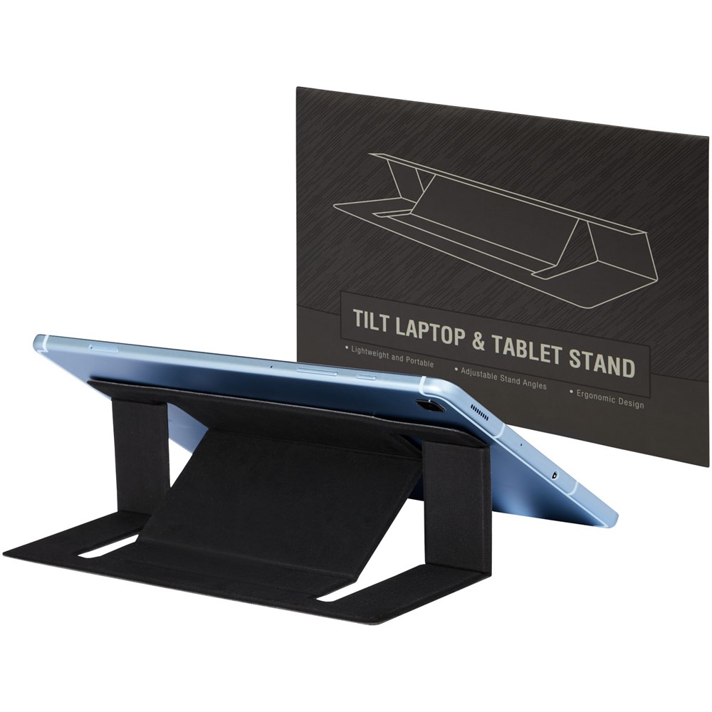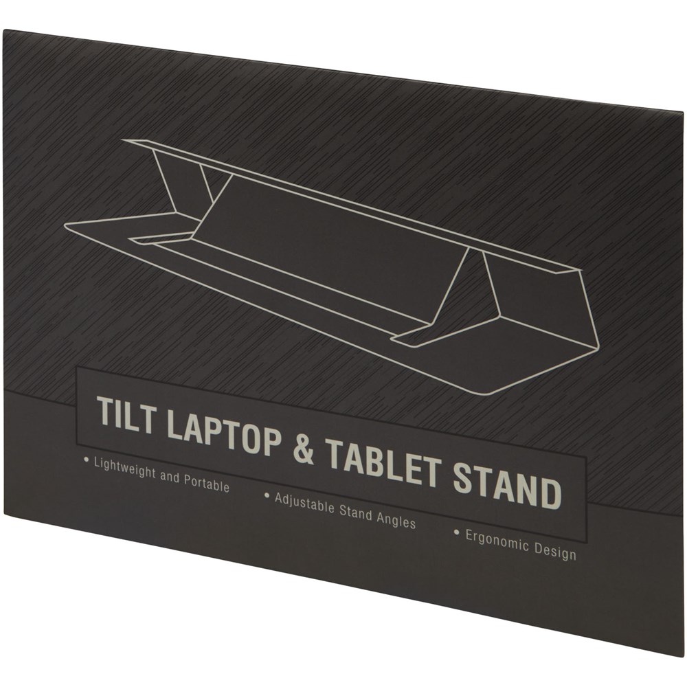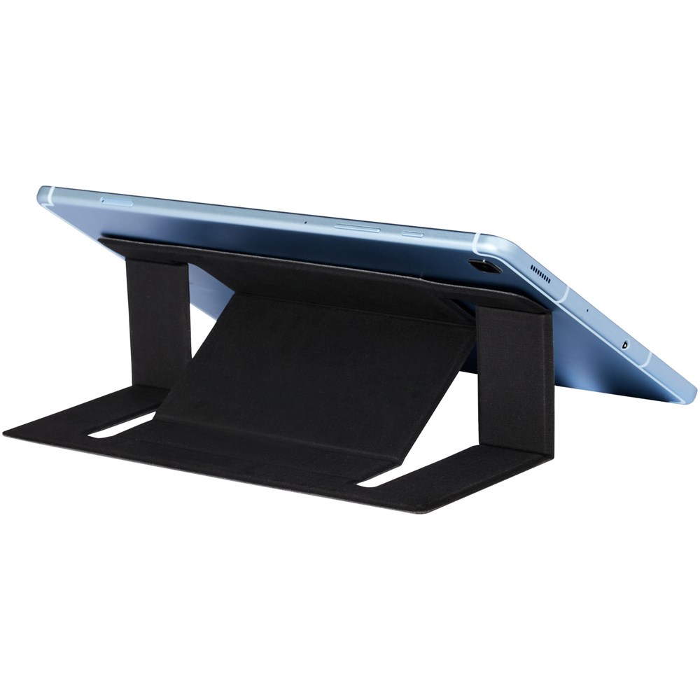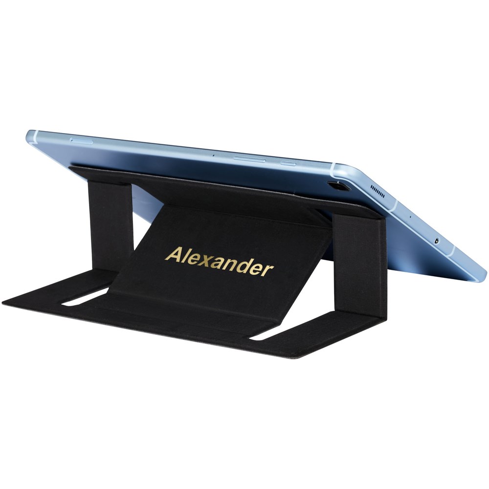 Faltbarer Laptopständer, mit dem der Laptop in einer bequemen Position gehalten und die Wärmeableitung unterstützt wird. Der Ständer kann bis zu 2 kg (4,4 lbs) tragen und in 2 verschiedene Richtungen verstellt werden. In einem Umschlag verpackt.