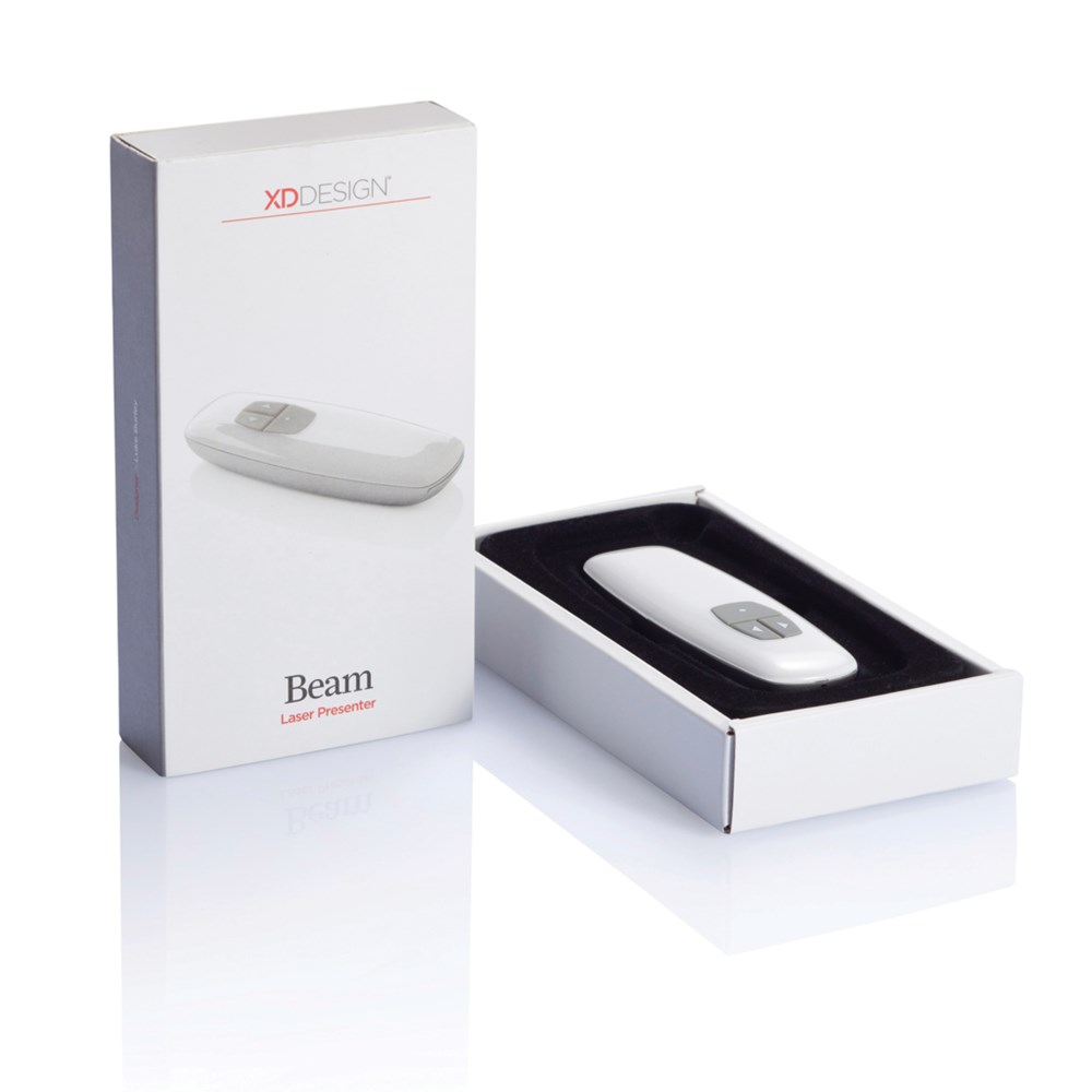 Mit dem Beam Hochfrequenz-Presenter mit Laserpointer und Page-Up/Down-Knopf leiten Sie professionell durch Ihre Präsentation. Ein schwarzes XD Design Etui ist im Lieferumfang enthalten. Geschütztes Design®