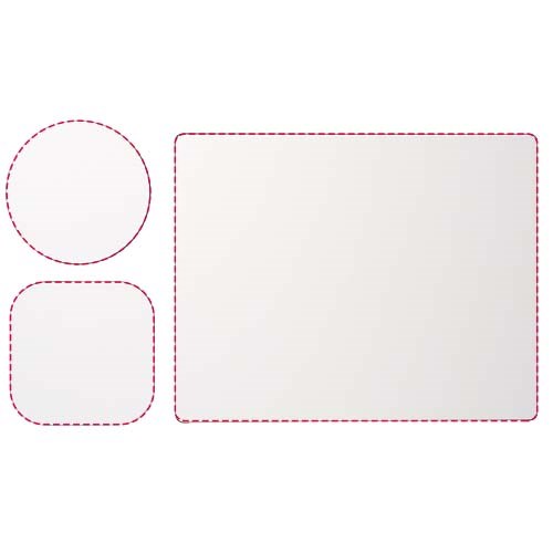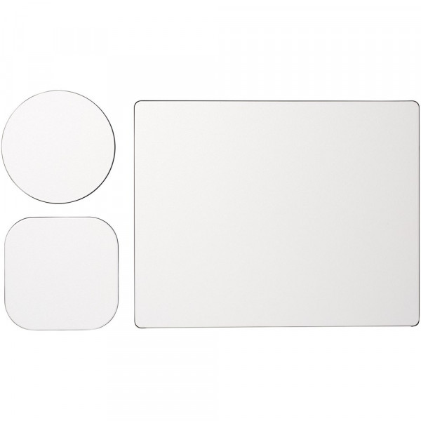 Geliefert mit einem Brite-Mat® Mousepad und einem Set passender Untersetzer. Das Set besteht aus einem rechteckigen Mousepad (0,3 x 19 x 21 cm), einem quadratischen (0,3 x 9,5 x 9,5 cm) und einem runden Untersetzer (0,3 x ø 9,5 cm).