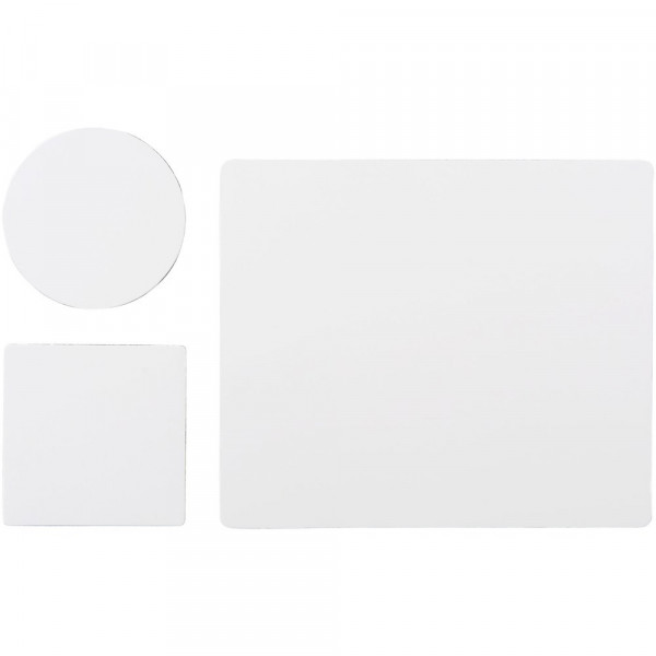 Besteht aus einem Q-Mat® Mousepad und einem Set aus zwei passenden Untersetzern versehen mit Ihrem Firmendesign. Das Set besteht aus einem rechteckigen Mousepad (0,3 x 23,5 x 20 cm), einem quadratischen (0,3 x 9,8 x 9,8 cm) und einem runden Untersetzer (0,3 x ø 9,8 cm).