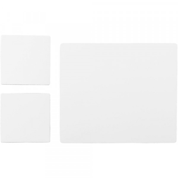 Besteht aus einem Q-Mat® Mousepad und einem Set aus zwei passenden Untersetzern versehen mit Ihrem Firmendesign. Das Set besteht aus einem rechteckigen Mousepad (0,3 x 23,5 x 20 cm) und zwei quadratischen Untersetzern (0,3 x 9,8 x 9,8 cm).