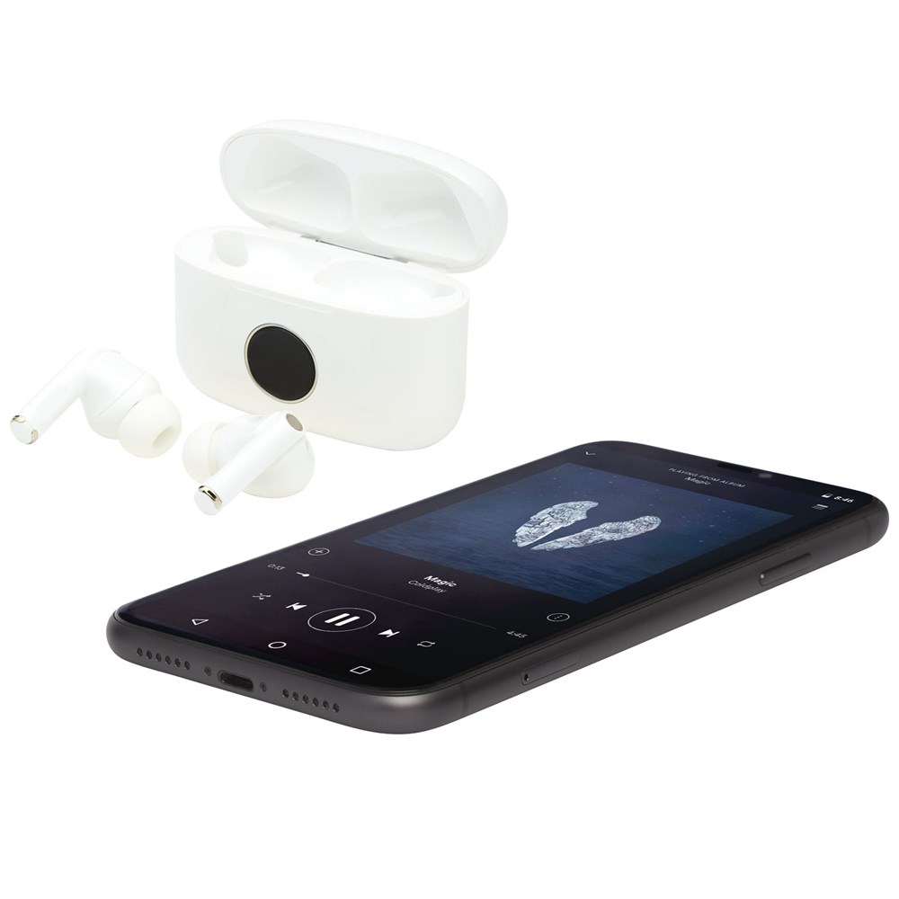 True Wireless Stereo (TWS) Ohrhörer mit aktiver Geräuschunterdrückung (ANC), die Geräusche bis zu 20 dB reduzieren und ein fantastisches Musikerlebnis selbst im Zug, Flugzeug, Bus oder an anderen Orten mit vielen unerwünschten Geräuschen bieten. Integrierte Multifunktionstaste zum Aktivieren des Sprachassistenten, praktische Steuerung zum Abspielen/Pausieren/Antworten/Auflegen/Ablehnen/nächster Titel/vorheriger Titel/Lautstärke erhöhen/Lautstärke verringern. Im „transparenten Modus“ verstärken Ohrhörer den Klang von außen durch integrierte Programmierung, sodass Sie beim Tragen von Ohrhörern die Umgebung im Auge behalten können. Die Wiedergabedauer bei maximaler Lautstärke beträgt ca. 3 Stunden mit ANC ON. Ohrhörer können mit einem einzigen Ladevorgang 4x von 0-100% vollständig aufgeladen werden. Bluetooth® 5.0-Verbindung bis zu einer Entfernung von 10 Metern. Geliefert mit drei verstellbaren Ohrstöpseln und TPE-Ladekabel. Verpackt in einer Premium-Geschenkbox.