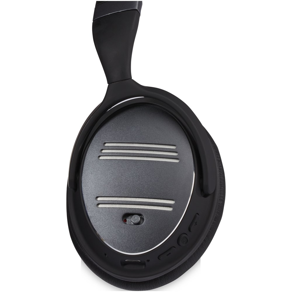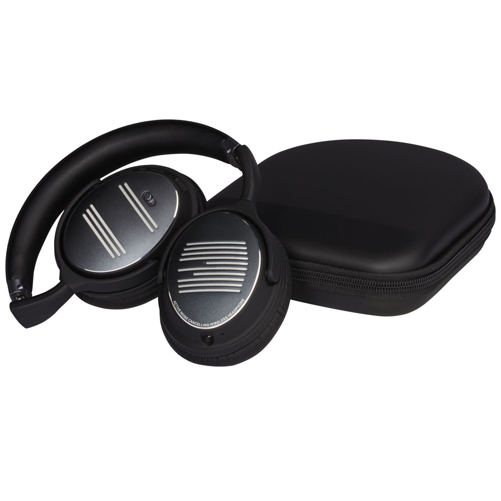 Faltbarer kabelloser Kopfhörer mit Active-Noice-Cancelling-Funktion (ANC). Mit einer Rauschunterdrückung von bis zu 20 dB und dem 40-mm-Lautsprecher bietet dieser Kopfhörer ein intensives Musikerlebnis, auch wenn Sie von Lärm umgeben sind. Ergonomisches Design mit einer weichen Hörmuschel für hohen Tragekomfort. Elegante Aluminiumplatte an der Hörmuschel mit eloxierter Oberfläche, die für eine Lasergravur geeignet ist. Über acht Stunden Wiedergabezeit bei maximaler Lautstärke mit eingeschaltetem ANC und 16 Stunden Wiedergabezeit bei maximaler Lautstärke mit ausgeschaltetem ANC. CSR Bluetooth® v4.2-Chipsatz für eine stabile Verbindung bis zu 10 Metern. Inklusive AUX-Kabel und Ladekabel. Lieferumfang mit PU-Tasche zum Schutz und zum einfachen Transport, und Verpackung in einer hochwertigen Geschenkbox.