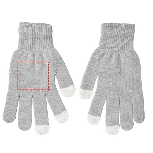 Taktile Handschuhe, um die Hände bei der Verwendung eines Smartphones in den kälteren Jahreszeiten warm zu halten. Die 3 taktilen Fingerspitzen an jedem Handschuh sind aus Edelstahlfasern gefertigt. In vielen verschiedenen Farben erhältlich, mit einer großen Dekorationsfläche auf dem Handschuh.