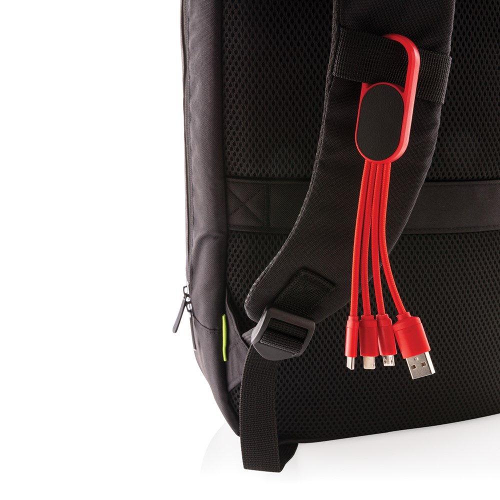 Dieses 4-in-1 Ladekabel mit Karabiner hat einen USB-Input, einen doppelseitigen Output für iOS und Mircro-USB für Android-Geräte sowie einen Type-C-Output um so alle gängingen Geräte laden zu können. Das Case aus ABS und das 10cm Kabel mit Nylon umwoben. Unterstützt das Laden bis zu 2.1A.