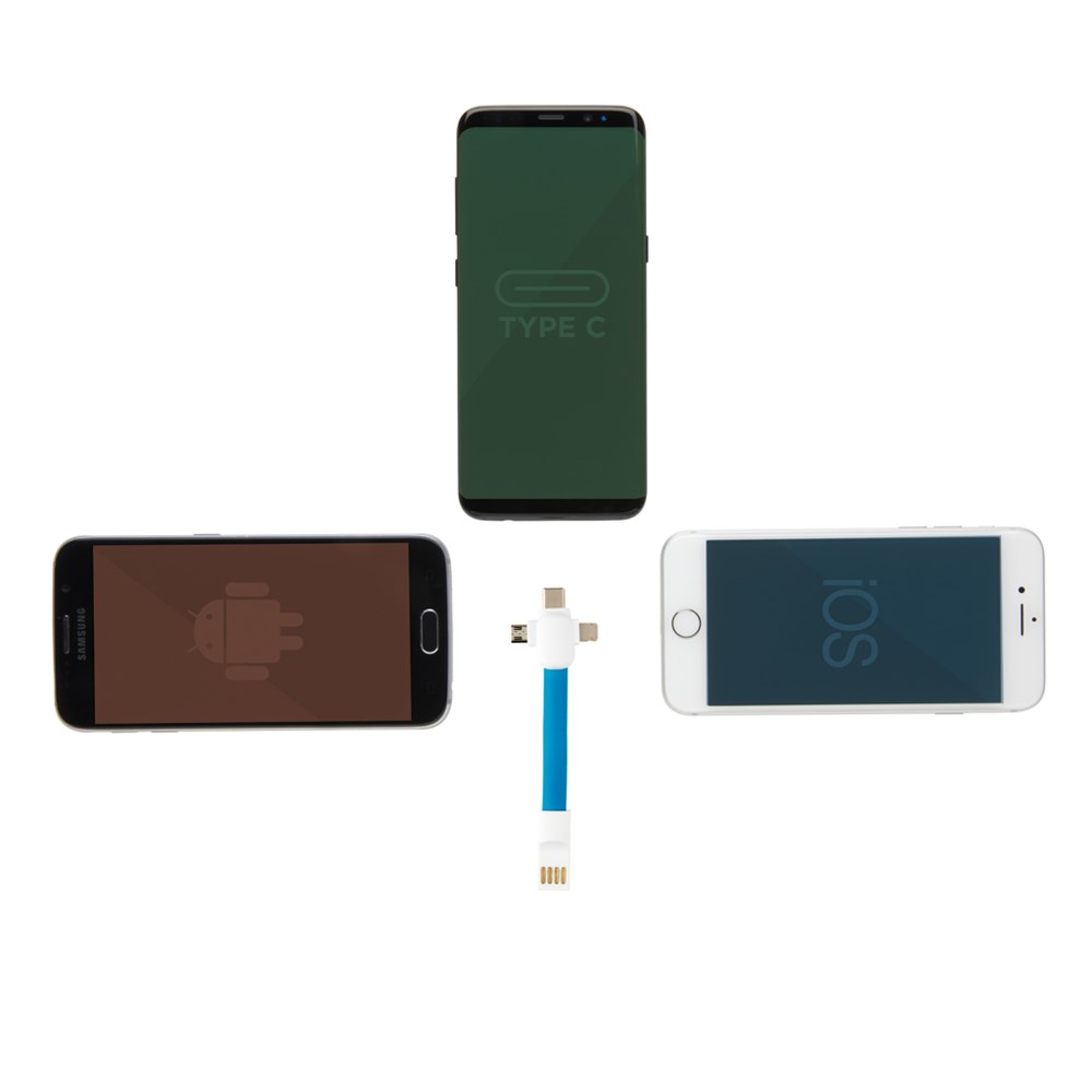3 verschiedene Anschlüsse: Micro-USB, Type-C und eine zweiseitige Verbindung für iOS und Android lässt Sie so alle Geräte laden - auch zur Datensynchronisation geeignet. Die Enden sind magnetisch und lassen sich so ganz einfach miteinander verbinden um das ganze kompakt mit zu nehmen.