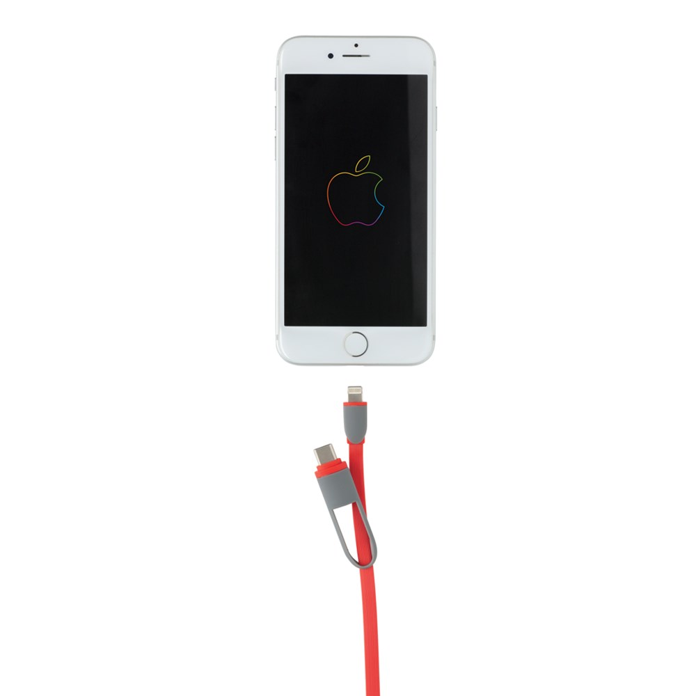 Kompaktes und ausziehbares 3-in-1 Ladekabel mit Type-C USB und zweiseitigem Anschlußstecker für iOS und Android Geräte, die einen Micro-USB Anschluß benötigen. Durch den Aufrollmechanismus kann das 100 cm Kabel, das auch zur Synchronisation Ihrer Daten verwendet werden kann, ohne jeglichen Kabelsalat überall hin mitgenommen werden. ABS-Gehäuse und TPU-Kabel.