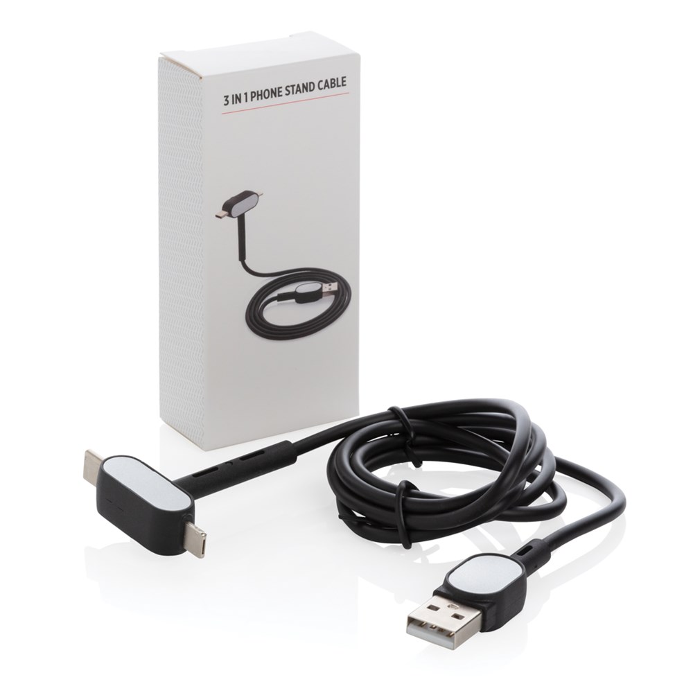 Mit diesem Kabel laden Sie nicht nur Ihr Smartphone ( über Type-C, Micro-USB & für iOS Geräte), es dient auch als Telefonhalter ( nur für Type-C und iOS-Geräte). Das 100cm lange Kabel ist aus PVC freiem TPE Material.