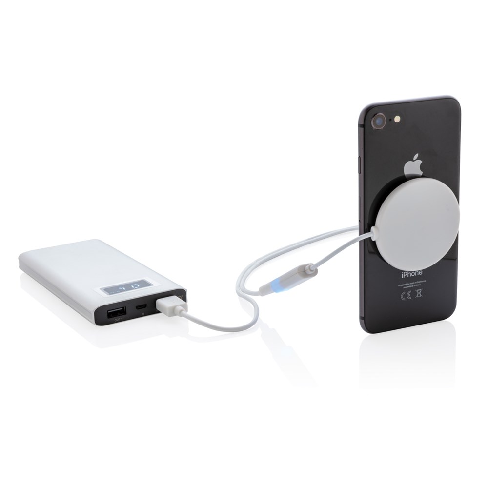 Beim nächsten Serienmarathon geht Ihnen nicht mehr der Saft aus - ob in der Bahn, zu Hause, oder als Beifahrer im Auto. Dieser 5W Wireless-Charger ist mit Saugnäpfen versehen um ihn an Ihrem Smartphone zu befestigen. Inkl. 120cm Micro-USB Kabel für die Stromversorgung. Aus ABS Material. Kompatibel mit allen QI-fähigen Geräten. Input: 5V/1.5A. Wireless Output: 5V/1A, 5W.