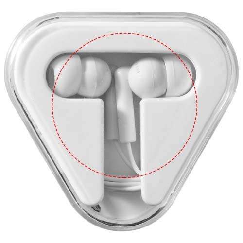 Dreieckiges Kunststoffetui mit Kabelaufbewahrung. Kann mit jedem Standard-Audiogerät mit einem 3,5 mm Audioeingang verwendet werden.